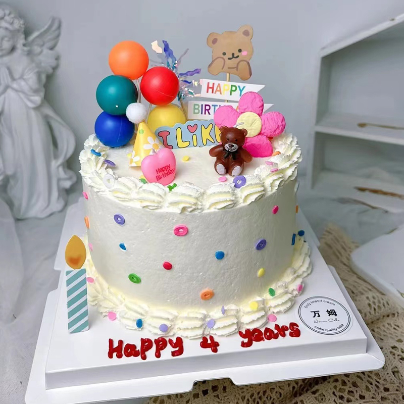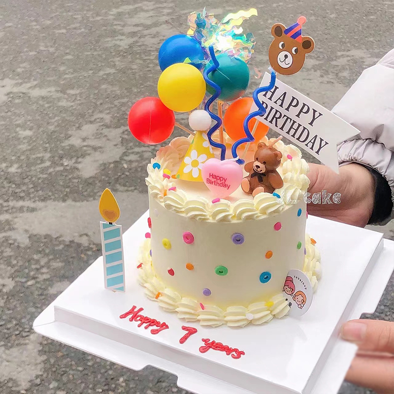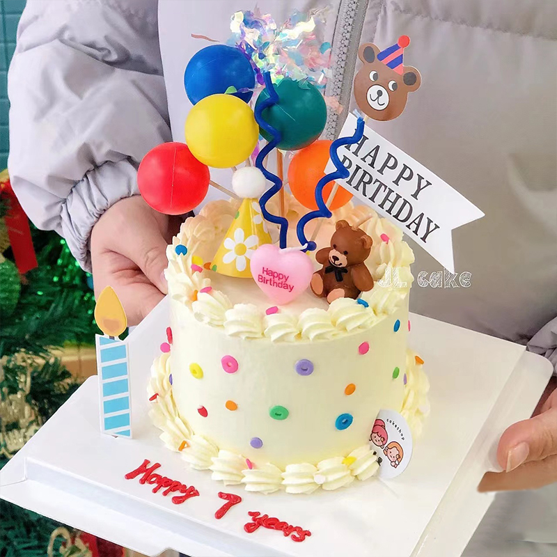 蛋糕裝飾韓國ins復古笑臉小熊迷你生日帽插牌愛心蠟燭小氣球插件