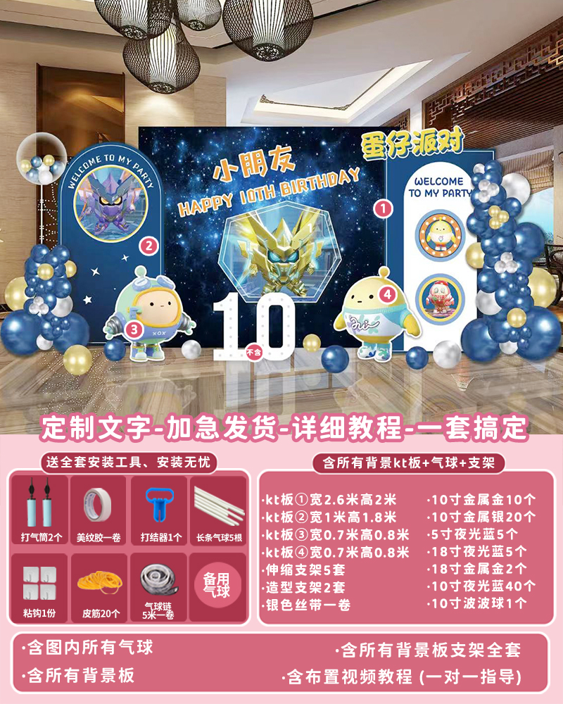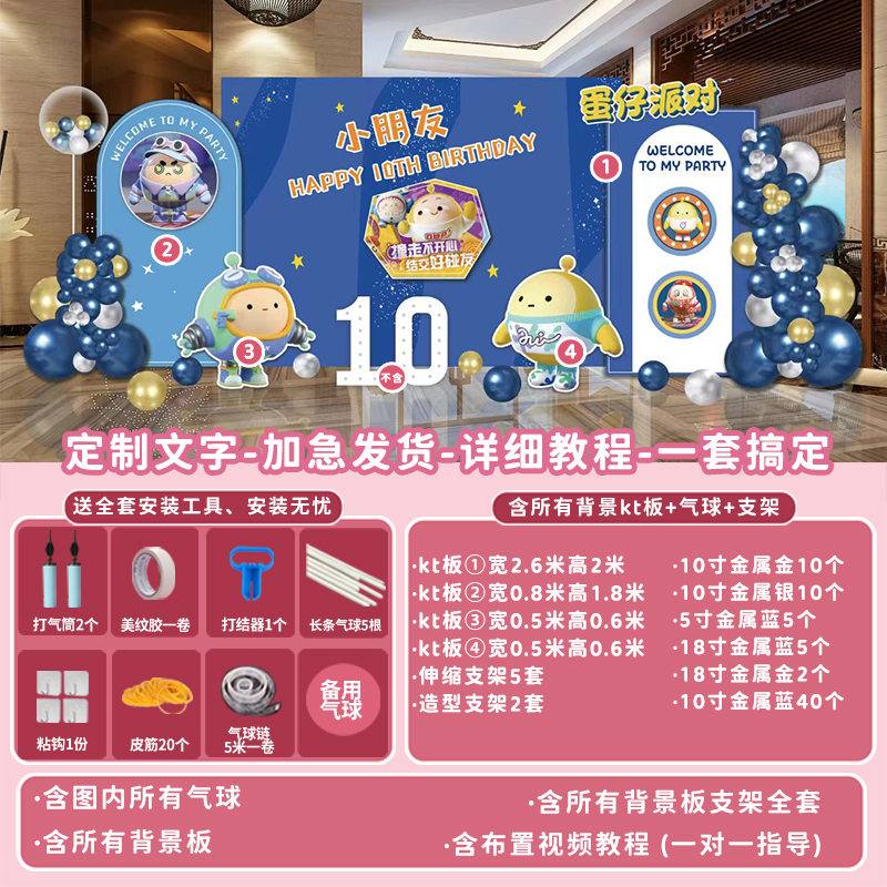 男女孩生日布置裝飾蛋仔派對主題10歲氣球場景氛圍背景墻kt板定制