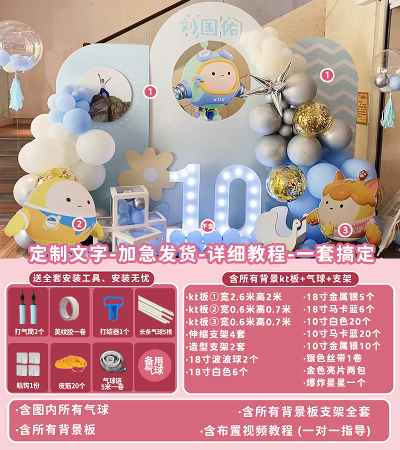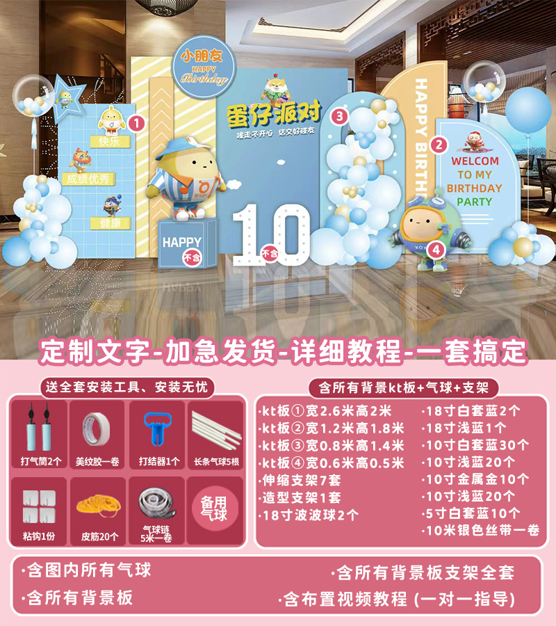 蛋仔同款生日宴100天周歲滿月背景裝飾氣球派對KT板定制用品套餐
