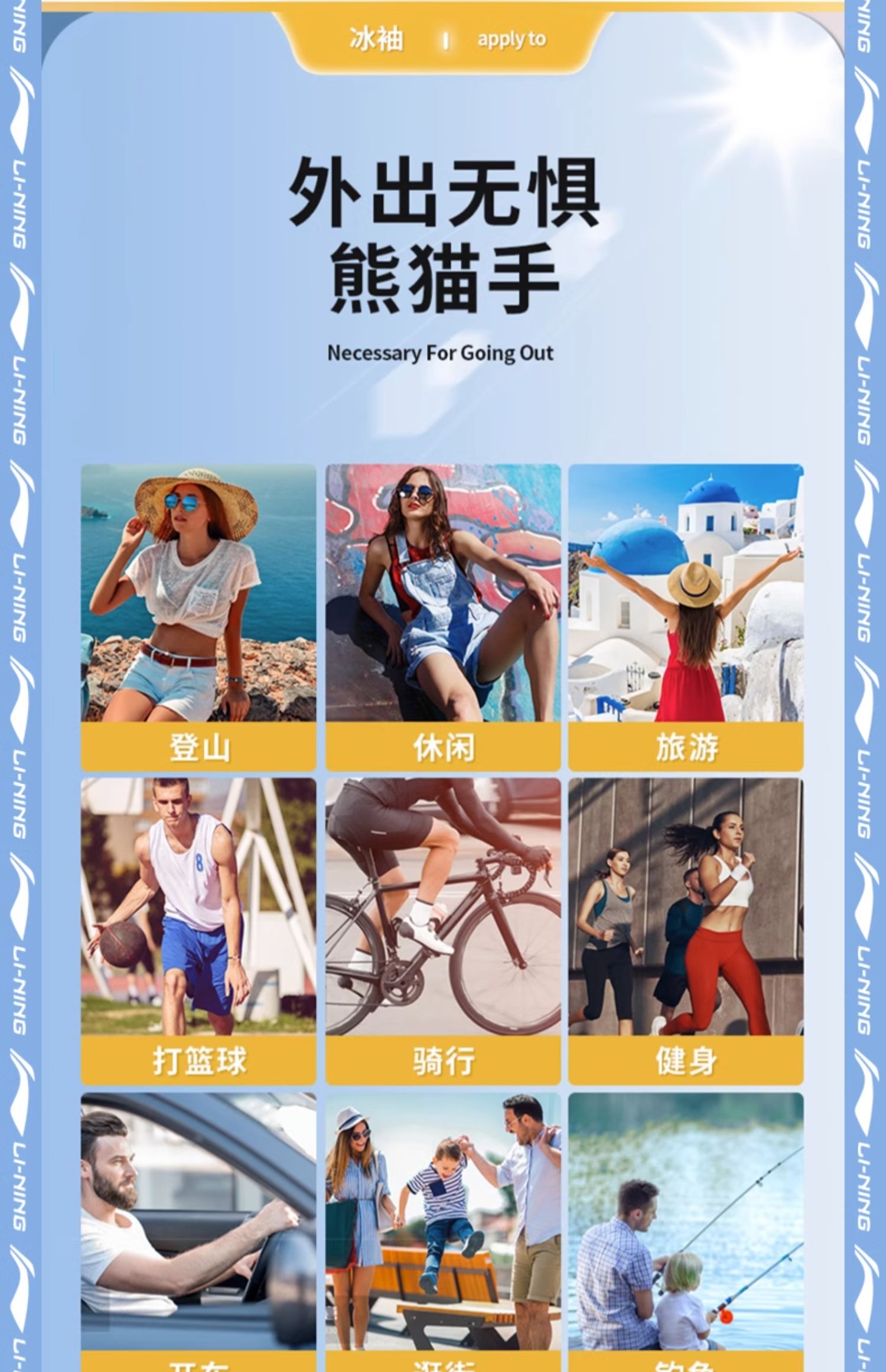 李寧騎行冰袖防曬套袖男袖套2023新連指防紫外線手袖冰絲開車釣魚