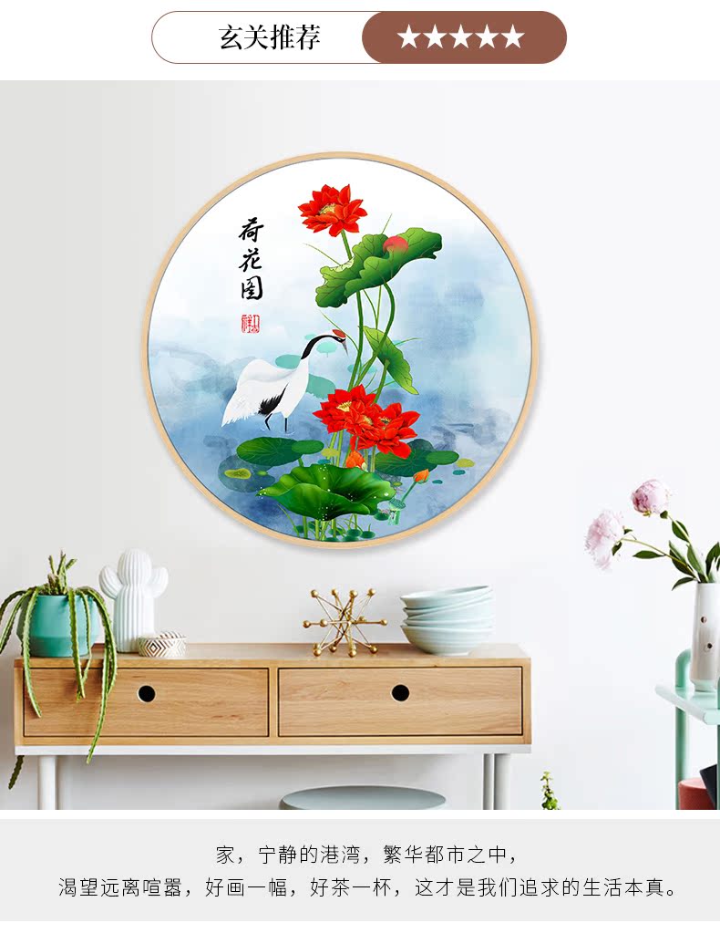 九魚圖十字繡2023新款線繡客廳現代中式小件荷花玄關滿繡手工刺繡