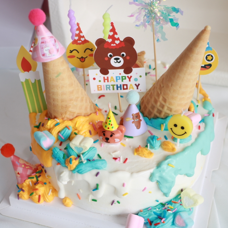網紅復古ins風蛋糕裝飾插件兒童卡通小熊蠟燭小帽子生日烘焙插牌