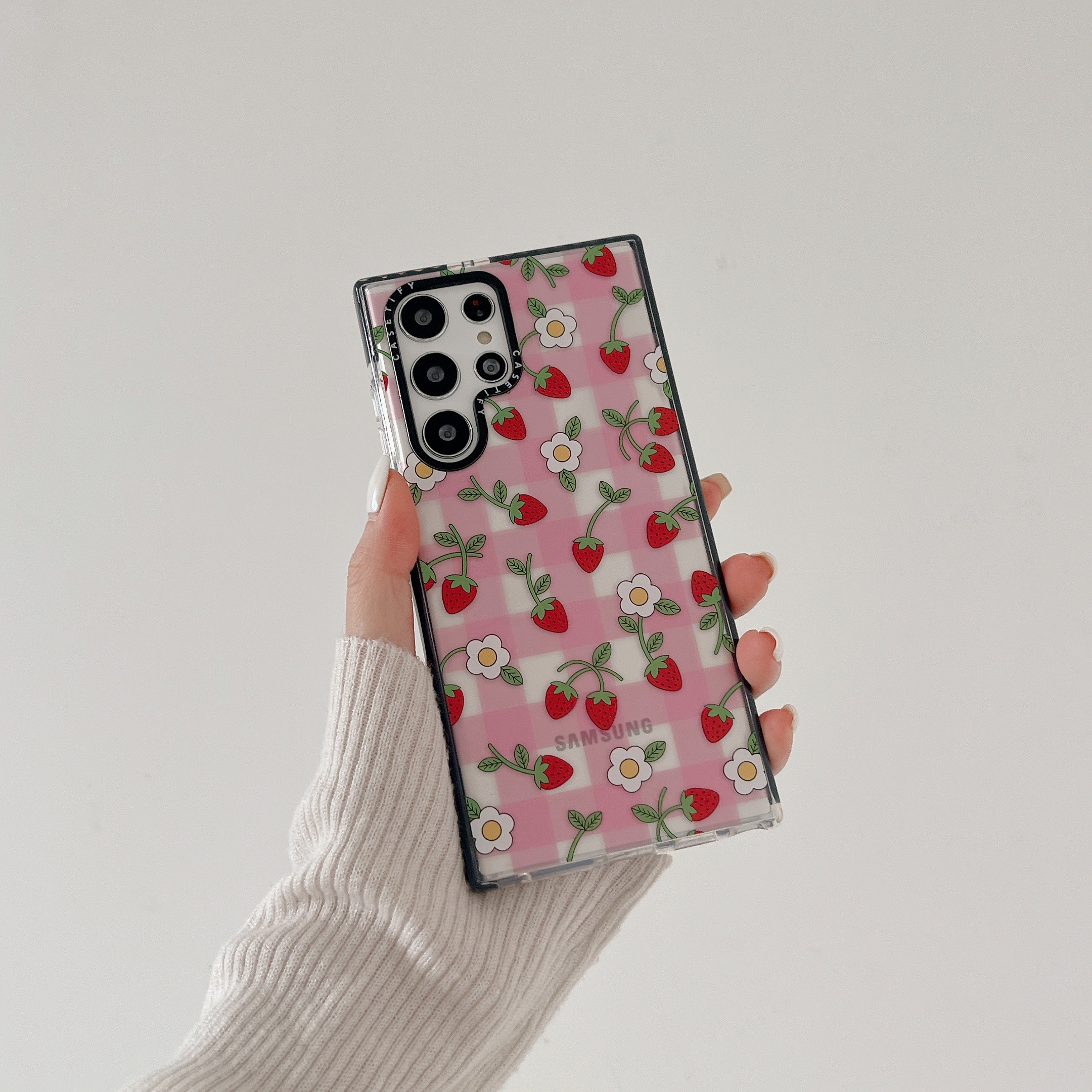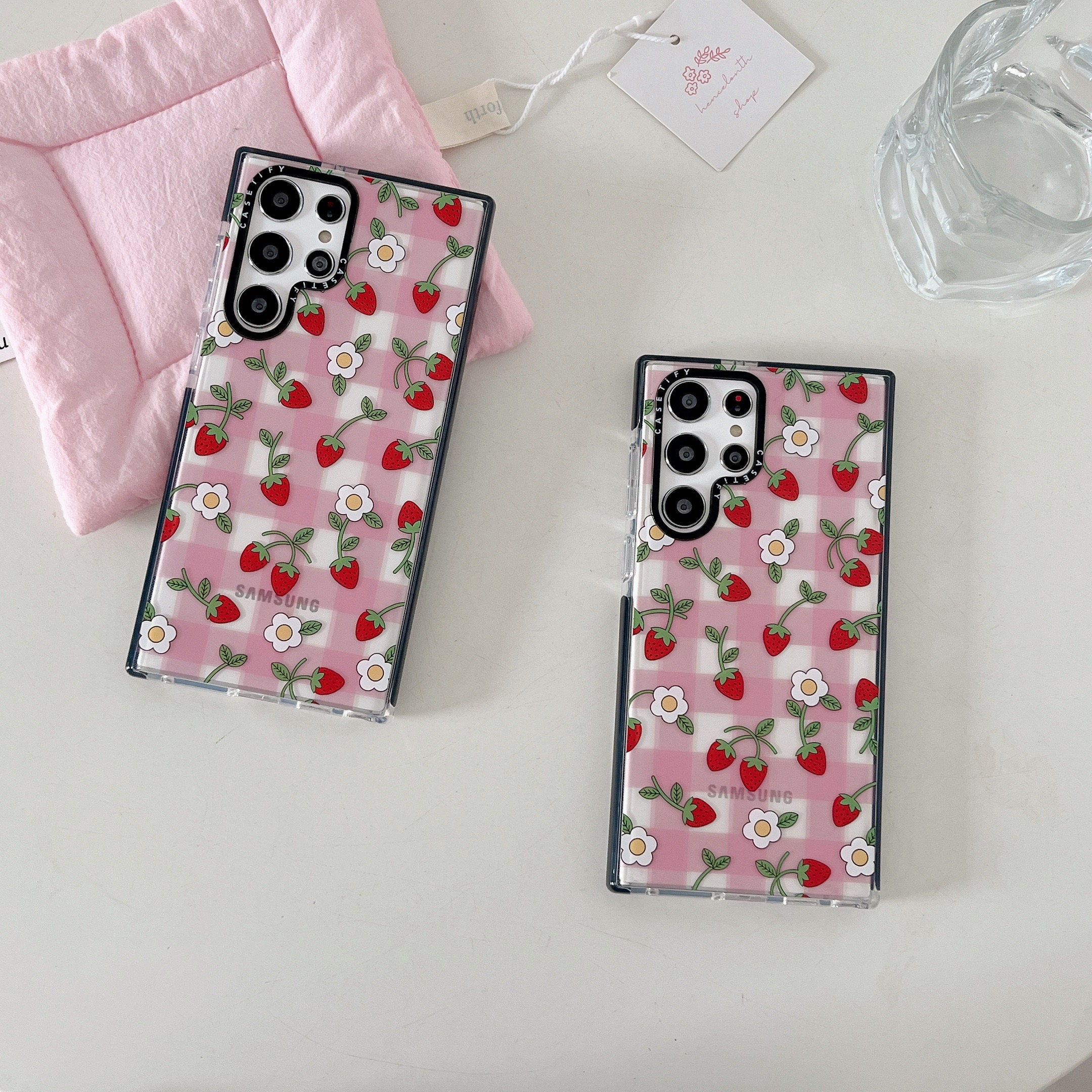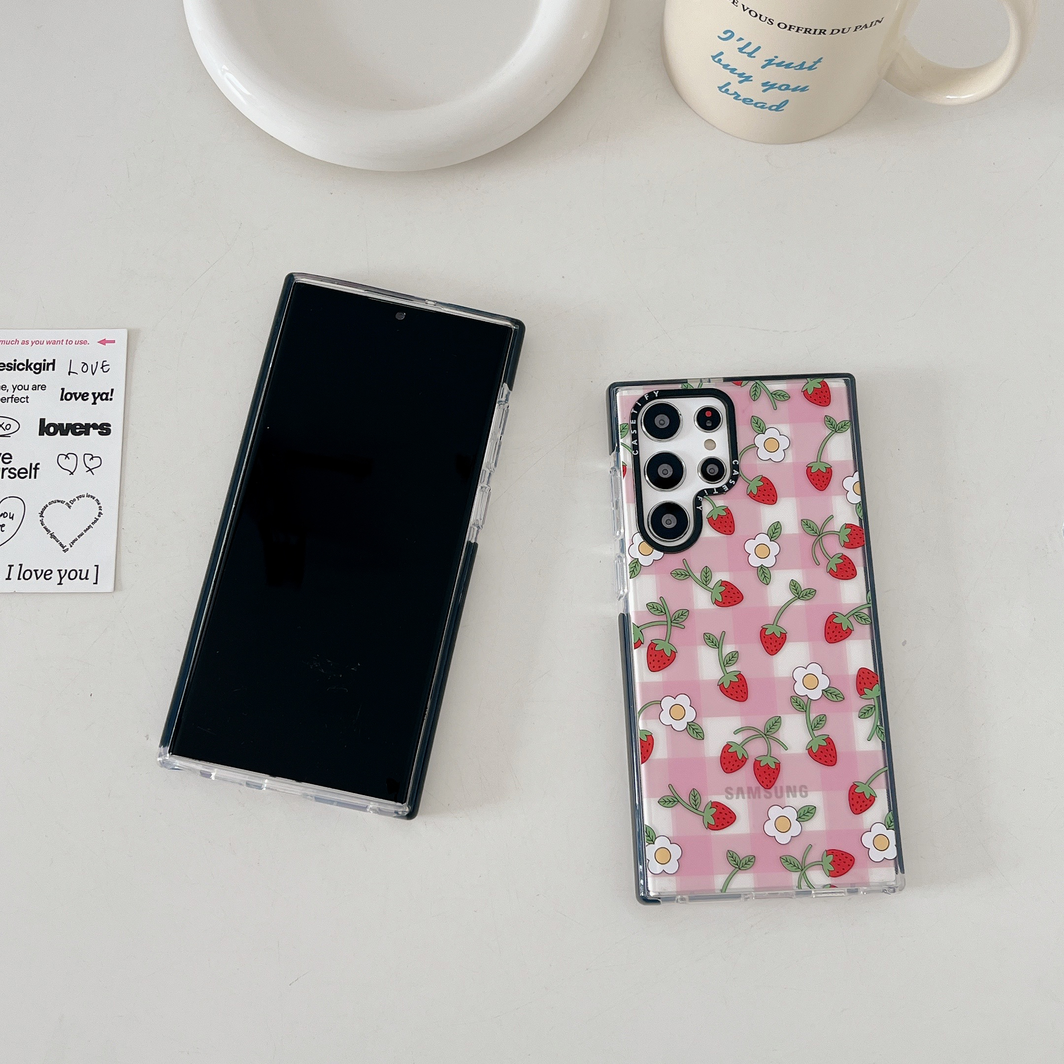 CASETI格子草莓花三星GalaxyS23高透軟殼S22Ultra手機殼S21防摔S20保護套