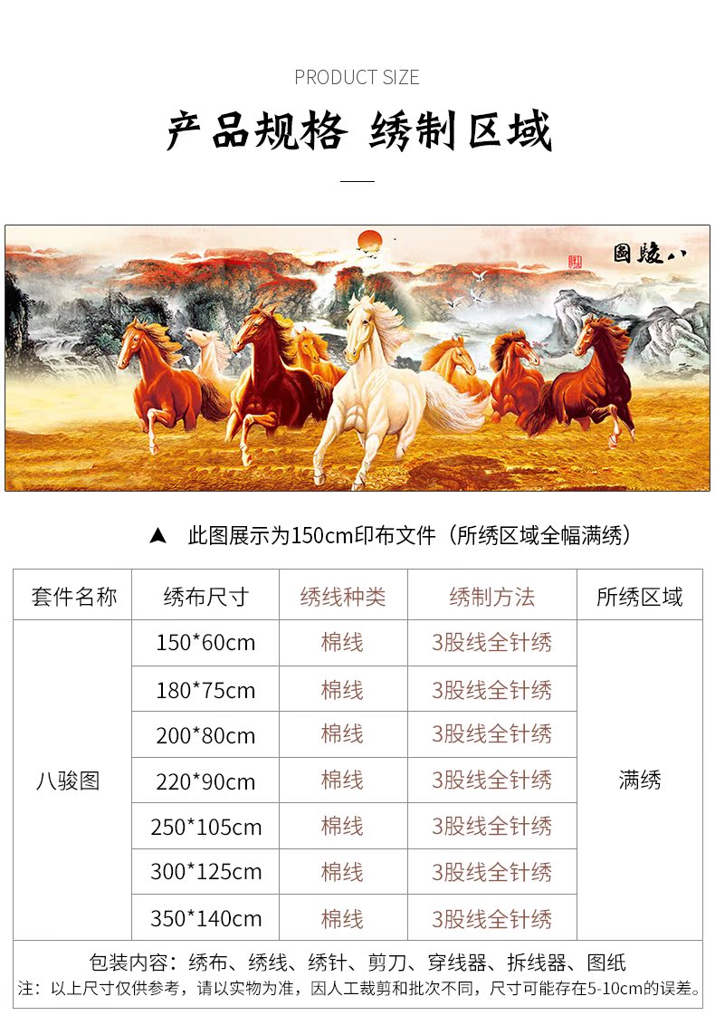 八馬駿圖十字繡2023新款客廳線繡大幅馬到成功滿繡八匹馬手工刺繡
