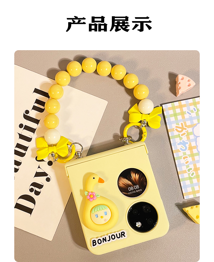 適用華為p50pocket手機殼新款折疊屏卡通可愛p50寶盒版保護套pocketS手提掛繩外殼硬鉸鏈全包防摔高級感女
