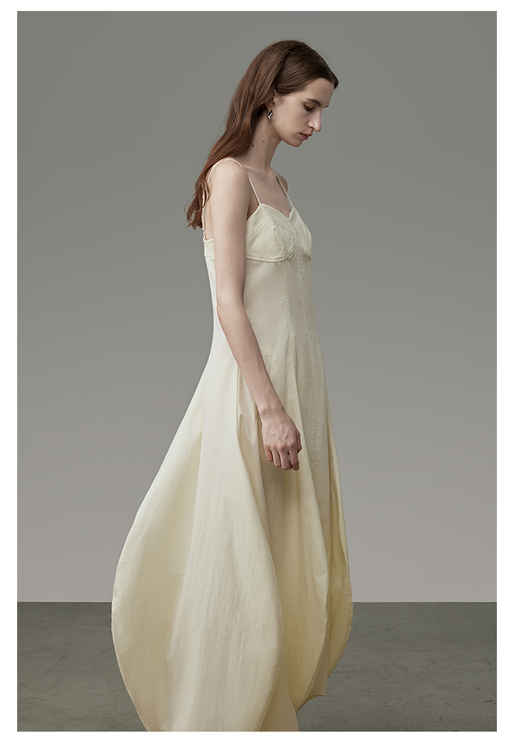 UNSPOKEN吊帶連衣裙法式復古無袖收腰a字大擺長裙高級感氣質裙子