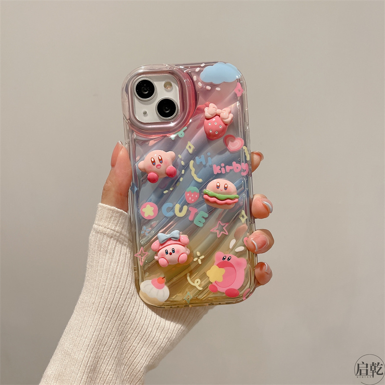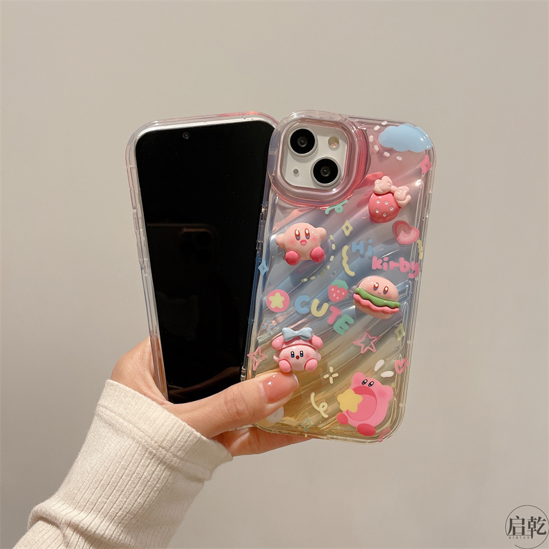 啟乾 立體星之卡比iPhone14手機殼適用蘋果13promax斜紋硬殼12/11少女心可愛卡通小眾創意網紅新款甜酷夏天