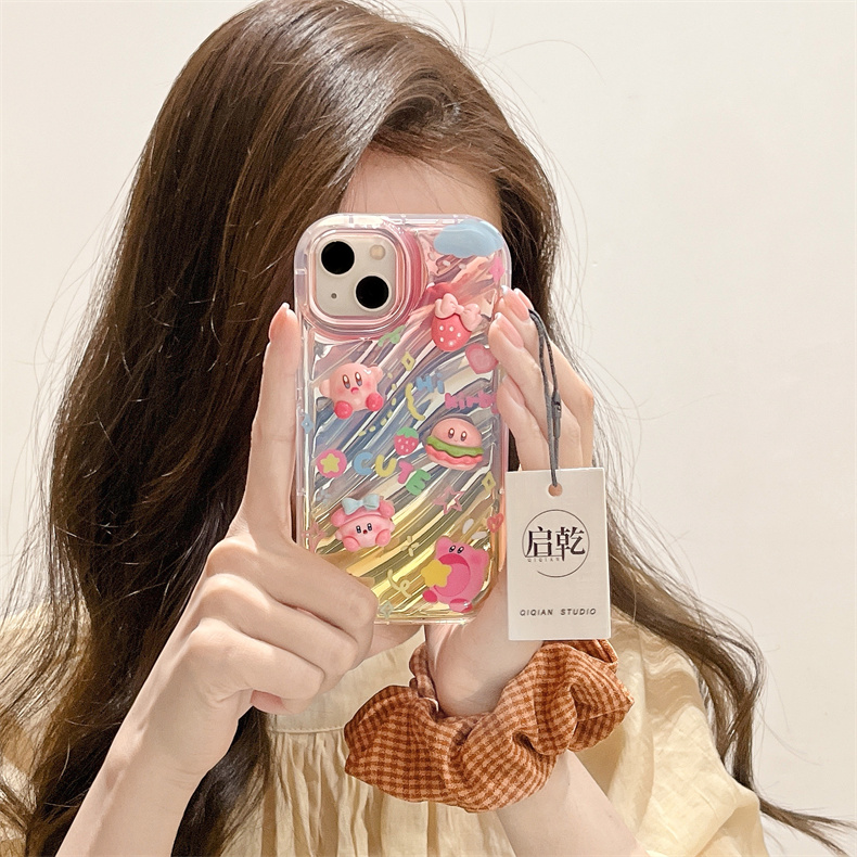 立體星之卡比適用蘋果15手機殼iphone14pro保護套新女款蘋果13/11奶油紋12mini透明xr軟硅膠7p全包se2防摔8p