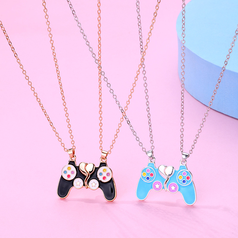 新款游戲機手柄閨蜜項鏈二人一對磁鐵石相吸合金滴油吊墜學生友誼