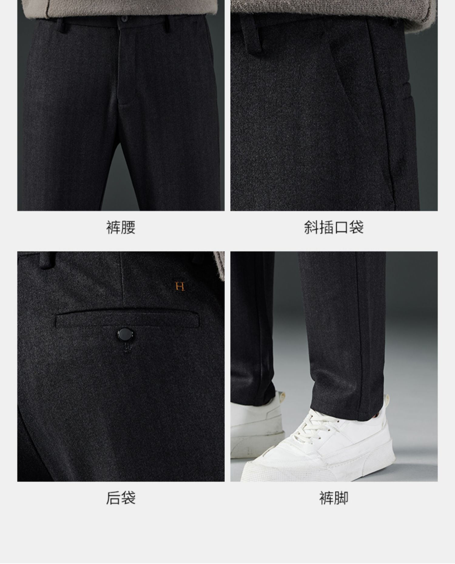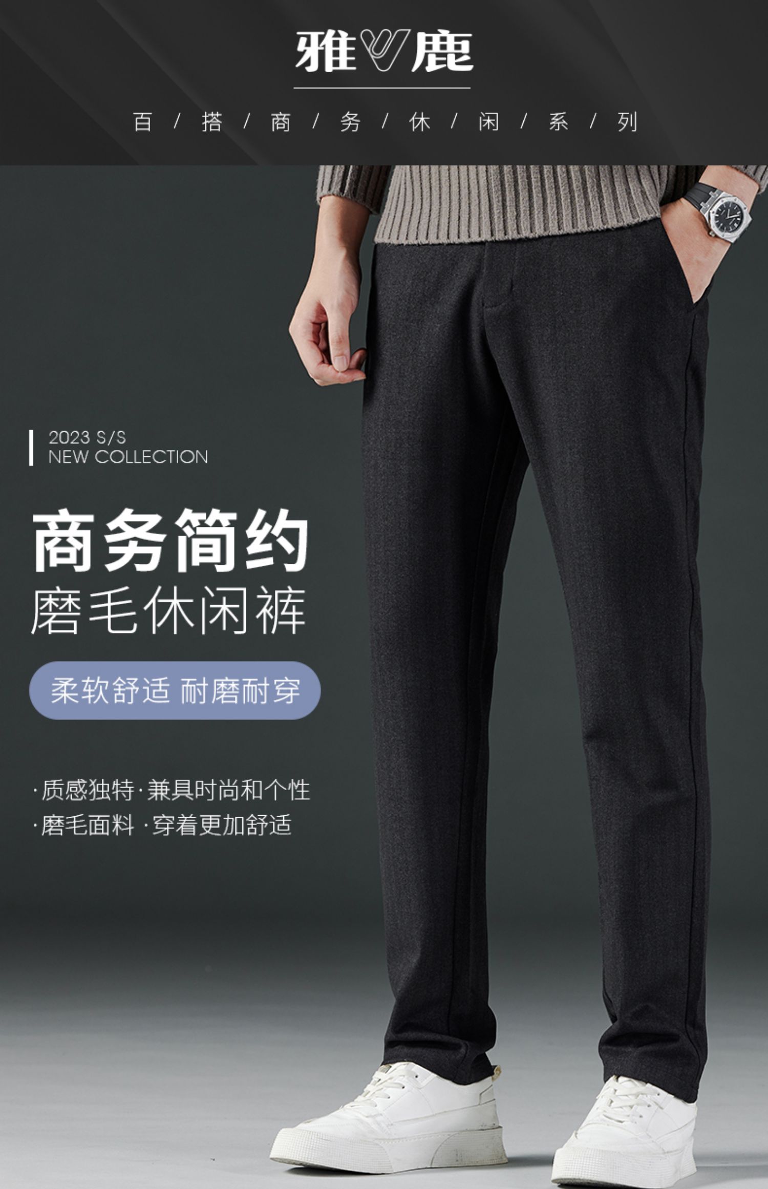 雅鹿休閑長褲男士2023春秋季新款時尚簡約磨毛面料直筒西服褲子男