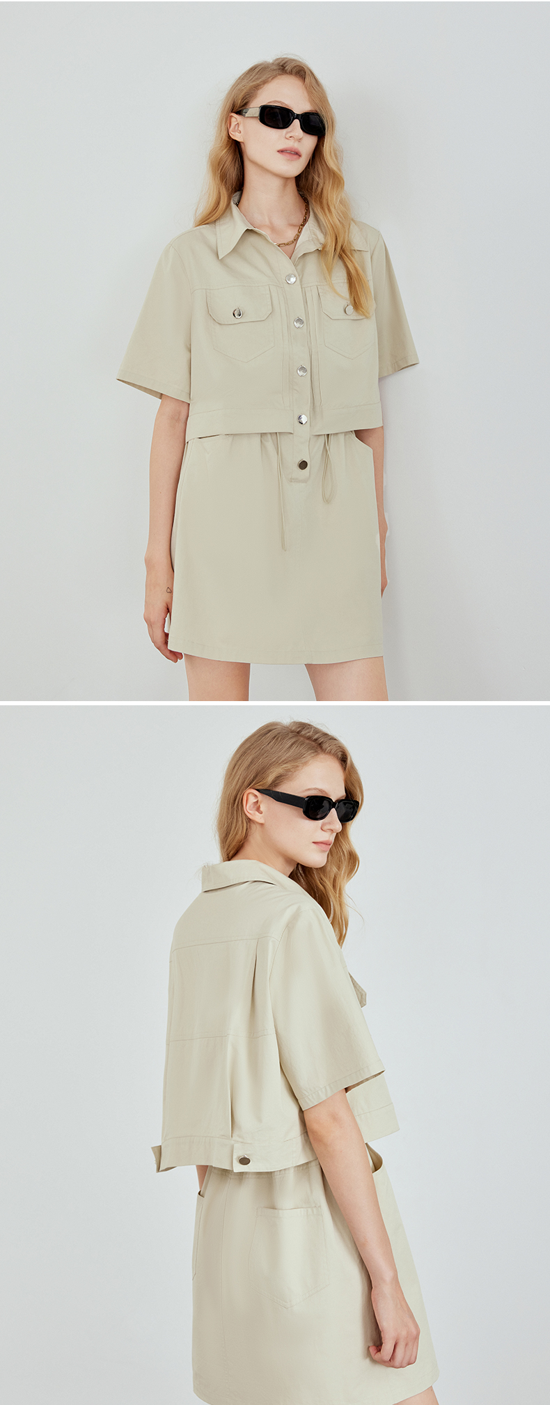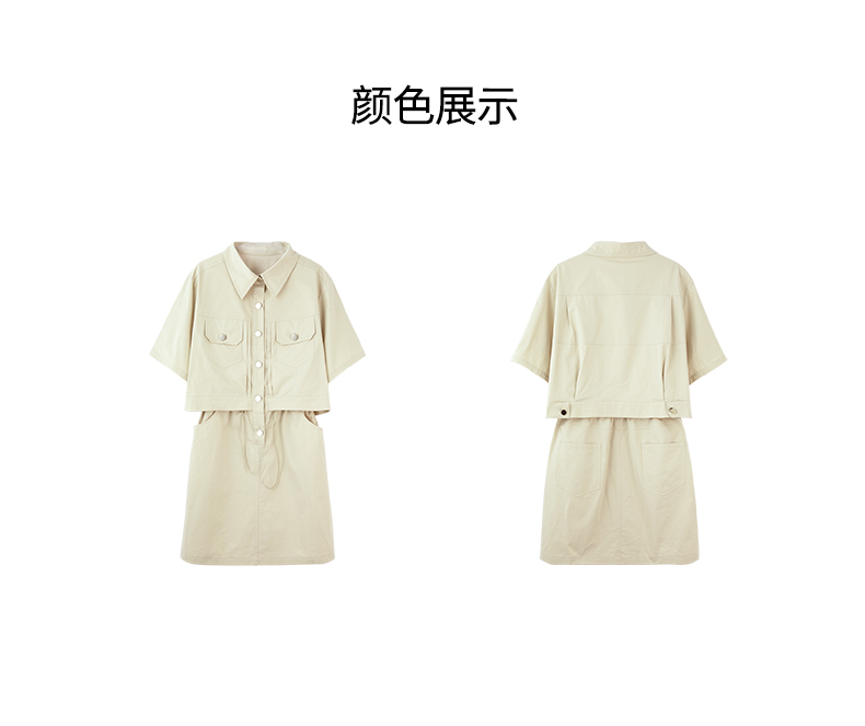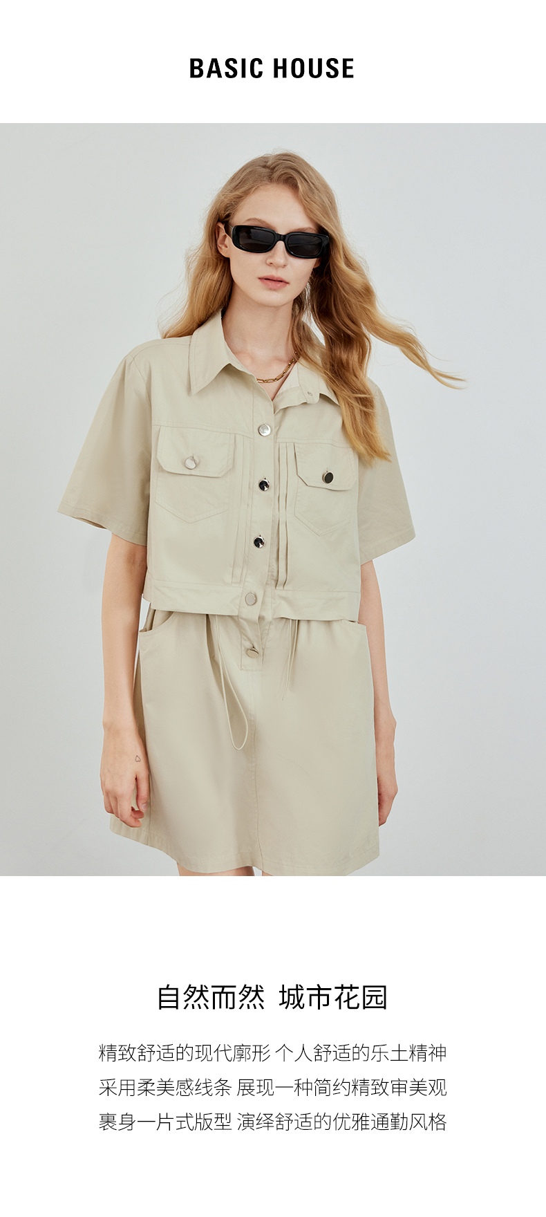 Basic House/百家好假兩件茶歇襯衫連衣裙女2023夏季氣質工裝裙子