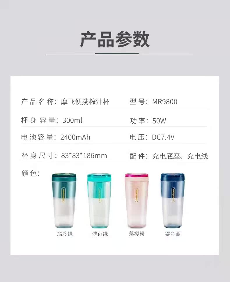 摩飛榨汁機家用小型電動便攜式果汁杯充電無線水果榨汁杯官方旗艦