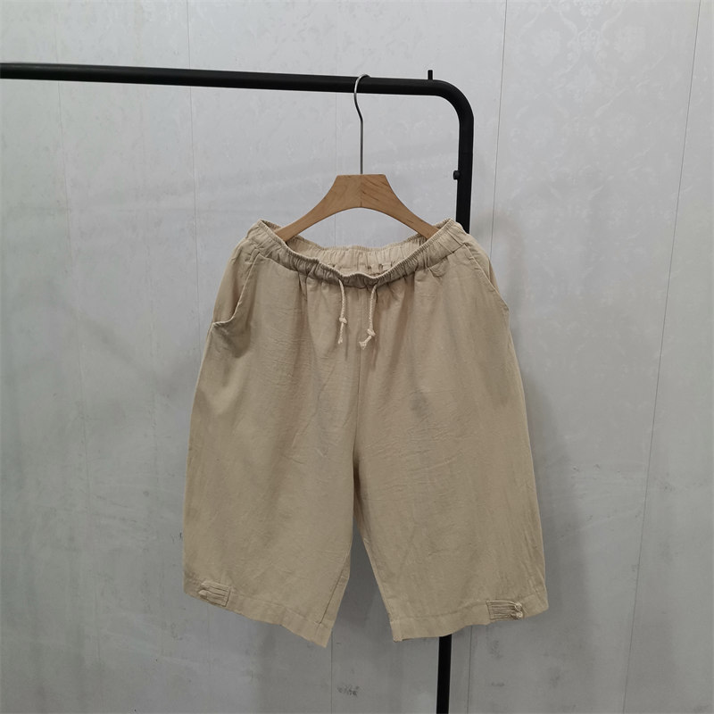 棉麻短褲男抽繩寬松六分褲直筒百搭休閑褲2023夏季薄款盤扣中褲子