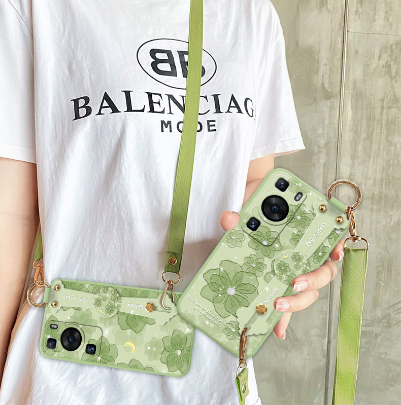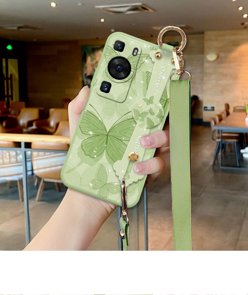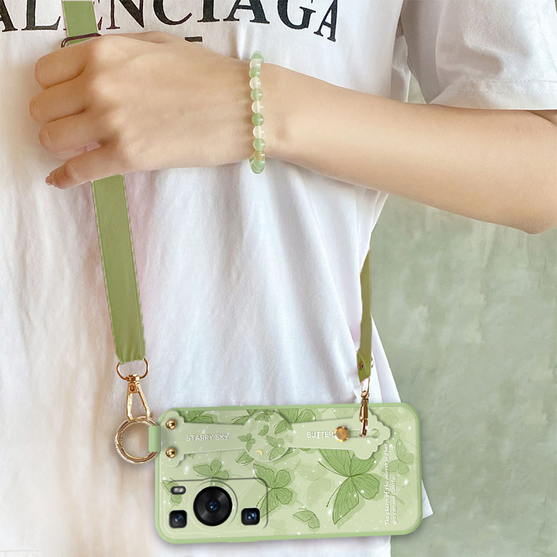 適用于華為p60手機殼p60pro液態硅膠腕帶支架保護殼防摔華為p50pro曲屏不頂膜大孔手機套p40掛脖斜挎繩p30