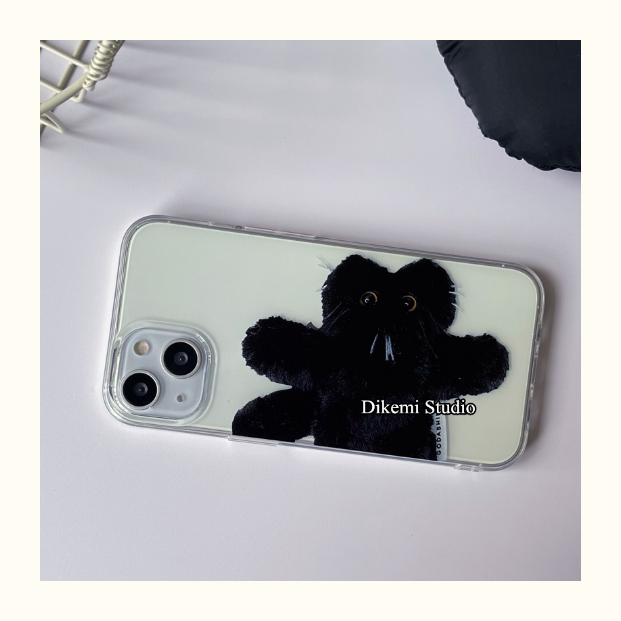 韓國愛豆李彩英isa同款甜酷白胡子黑貓軟殼適用iphone14promax/13pro蘋果13/12/11全包透明手機保護套男女