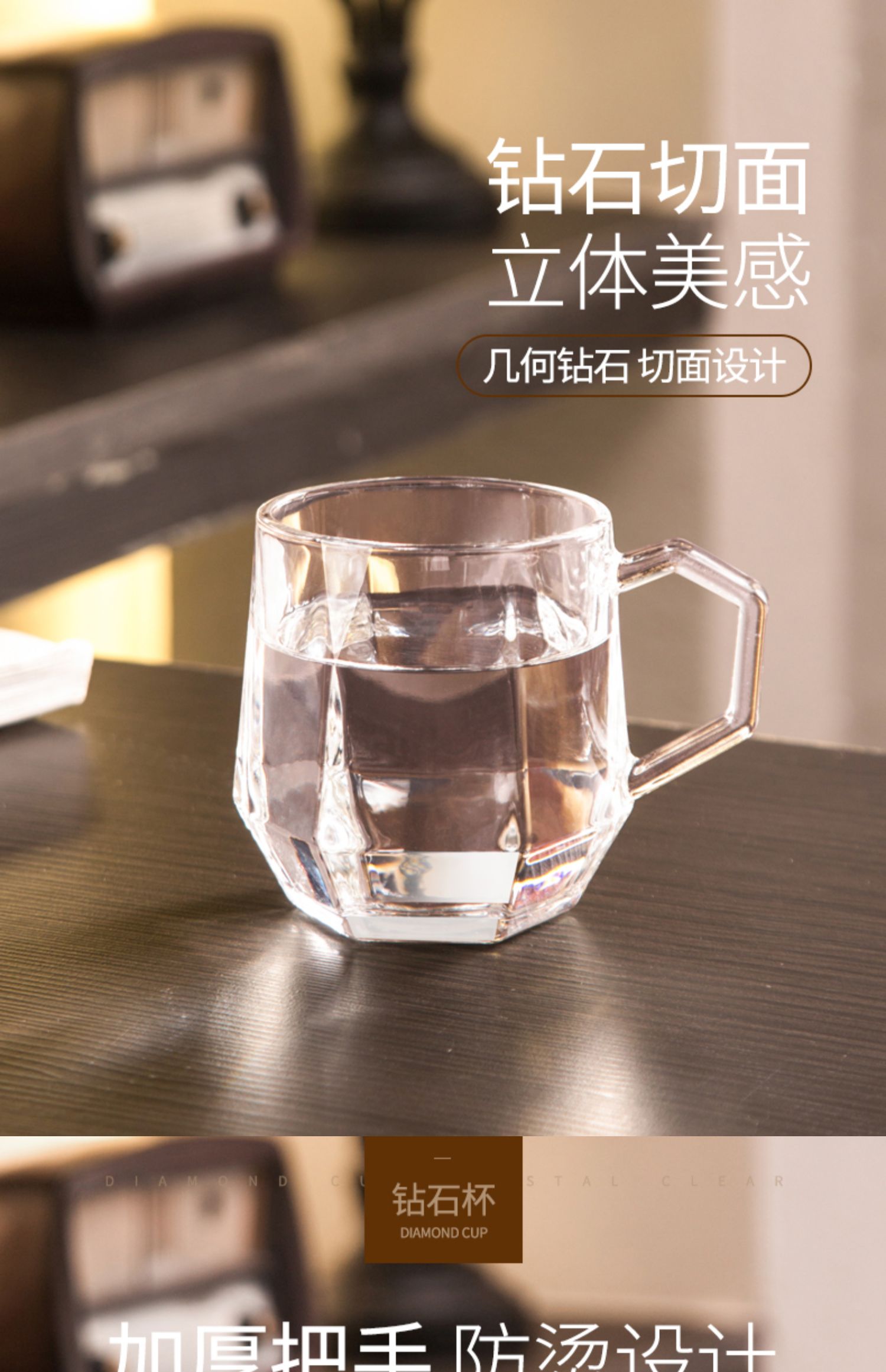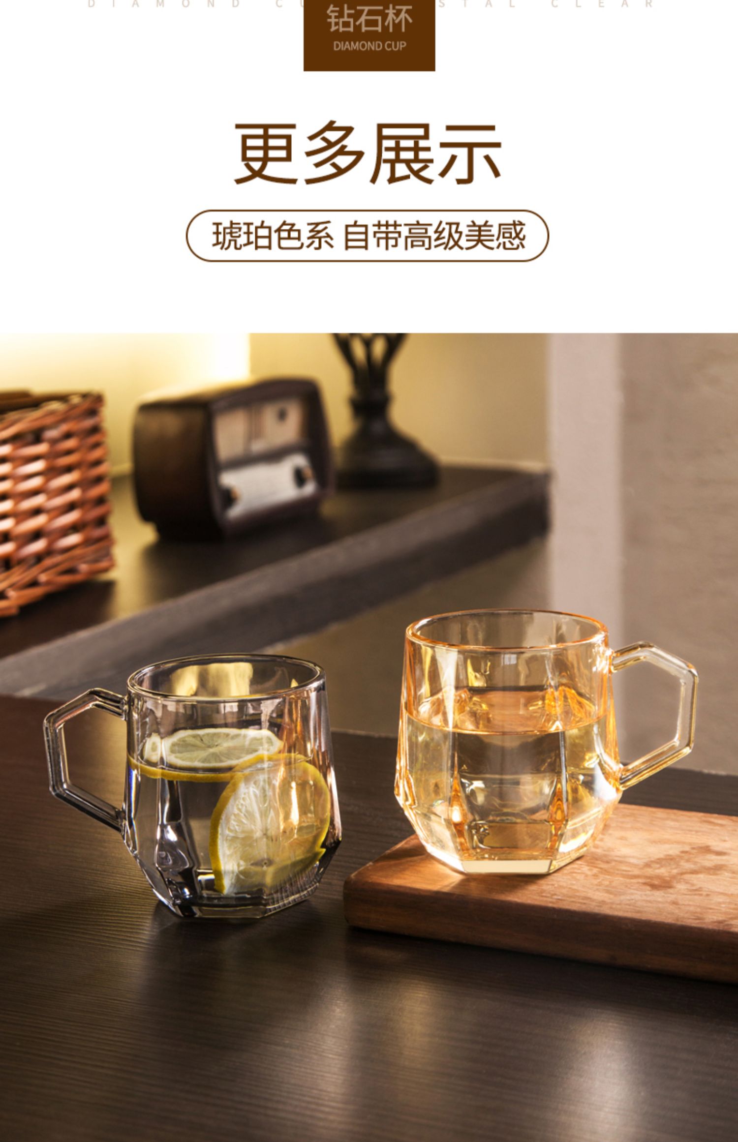 帶把手六菱角玻璃杯家用高級感客廳喝水杯輕奢風牛奶杯咖啡果汁杯