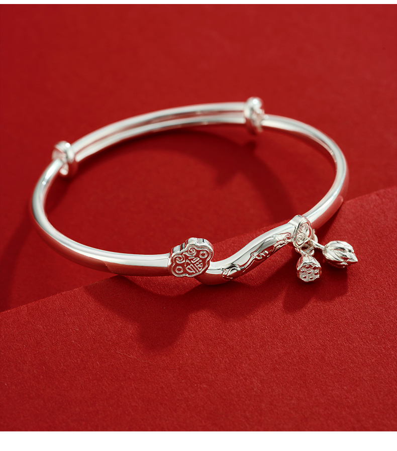 順欽銀樓S9999純銀手鐲女國潮古風足銀鐲子漢服配飾稱心如意手飾