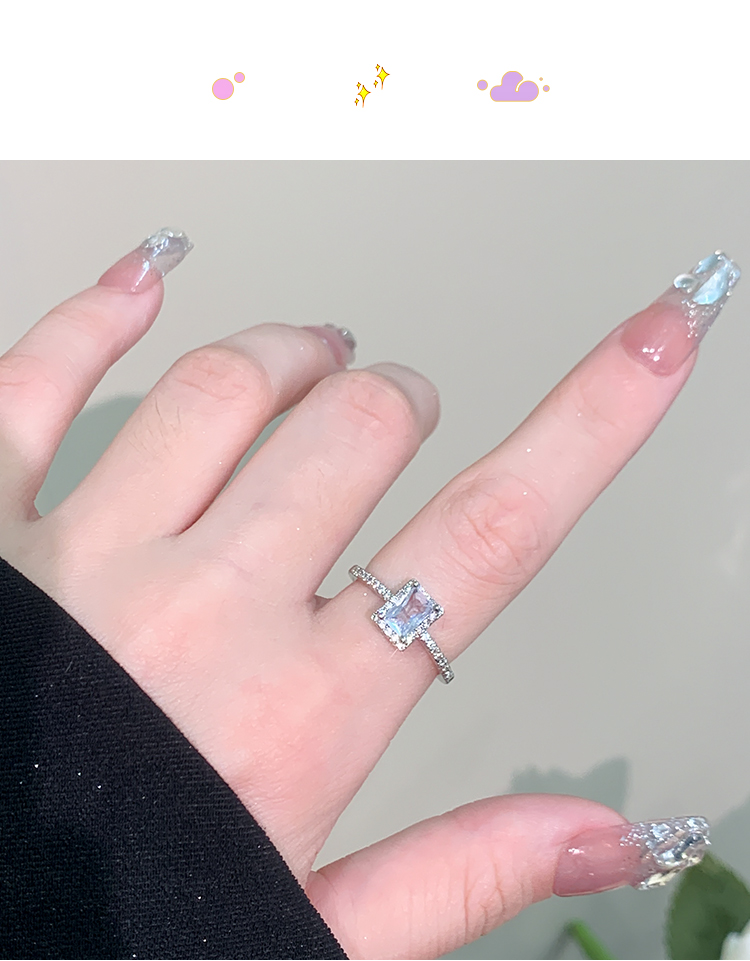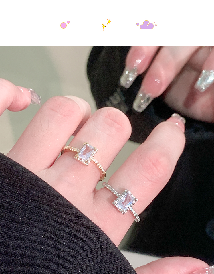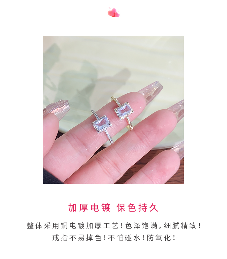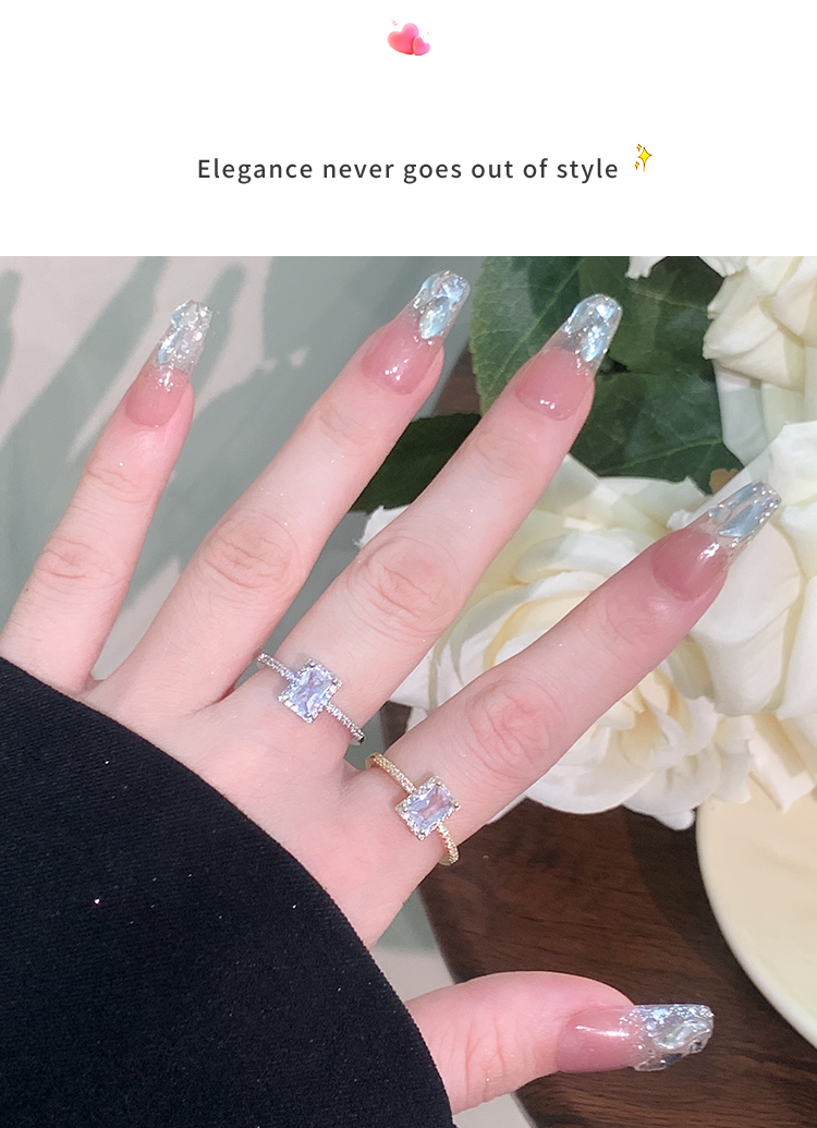 輕奢長方糖戒指女小眾設計素圈戒指女時尚個性鋯石尾戒開口指環女
