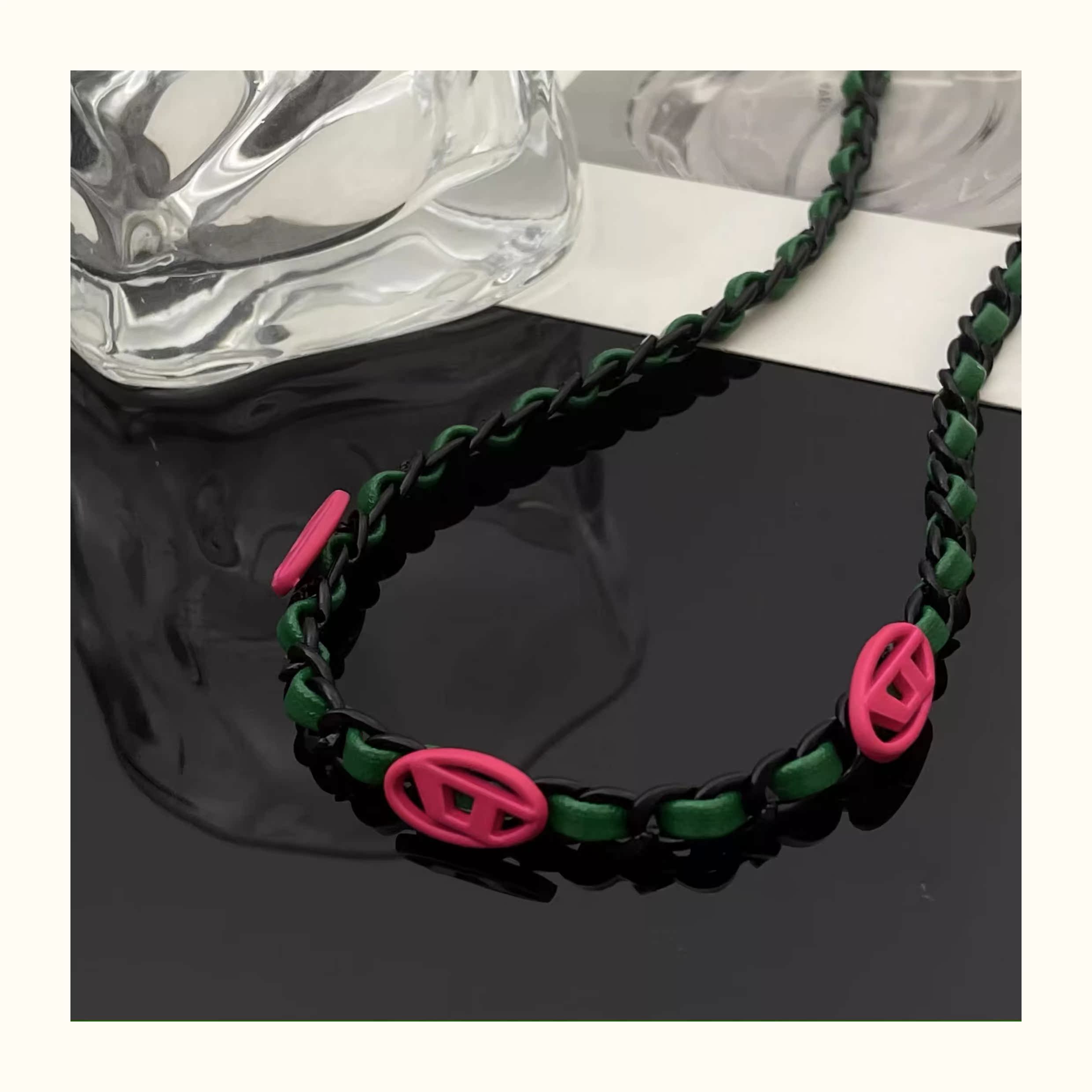 甜酷銅合金皮質項鏈小眾百搭幾何吊墜chocker頸鏈輕奢鎖骨鏈