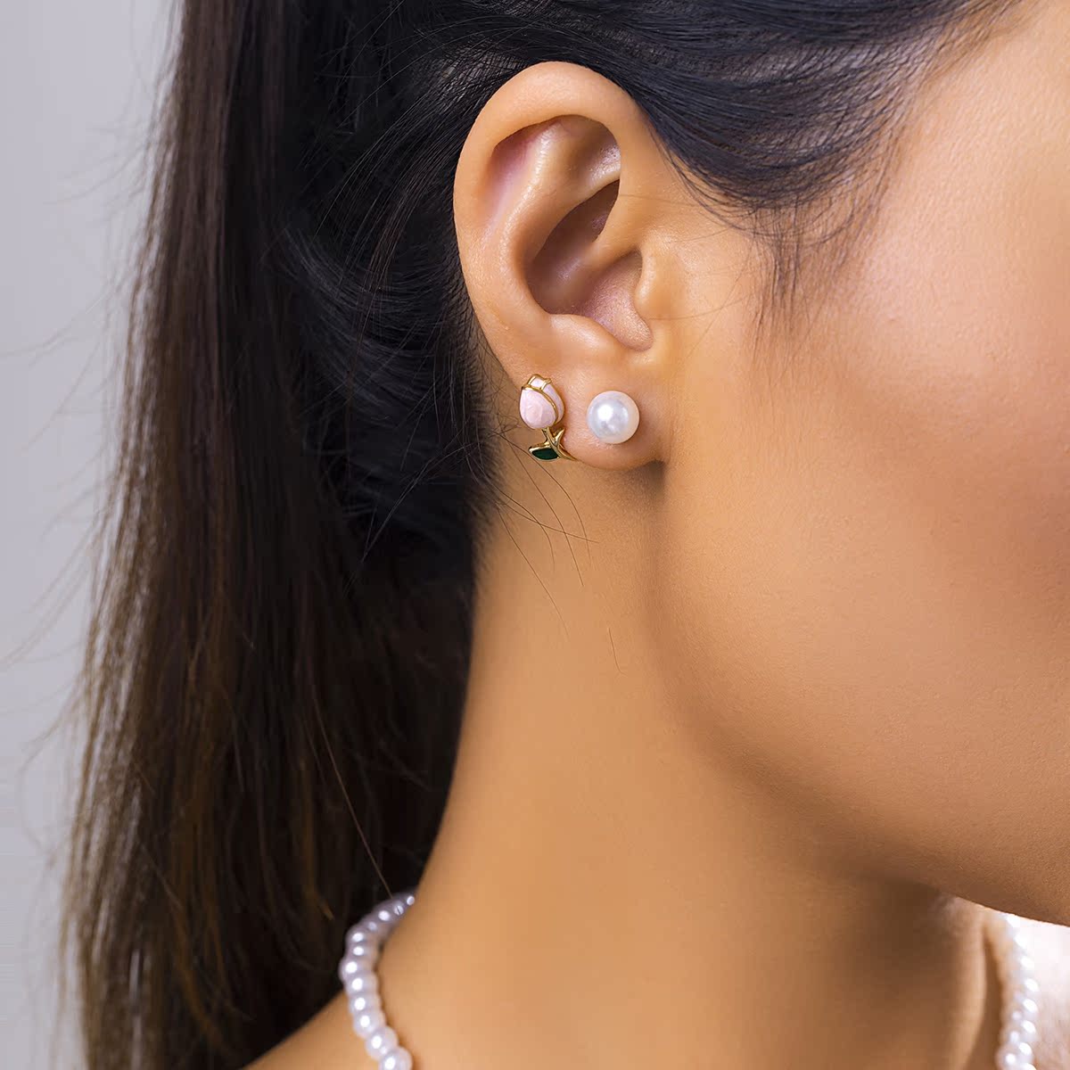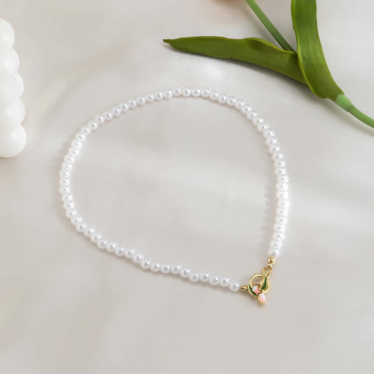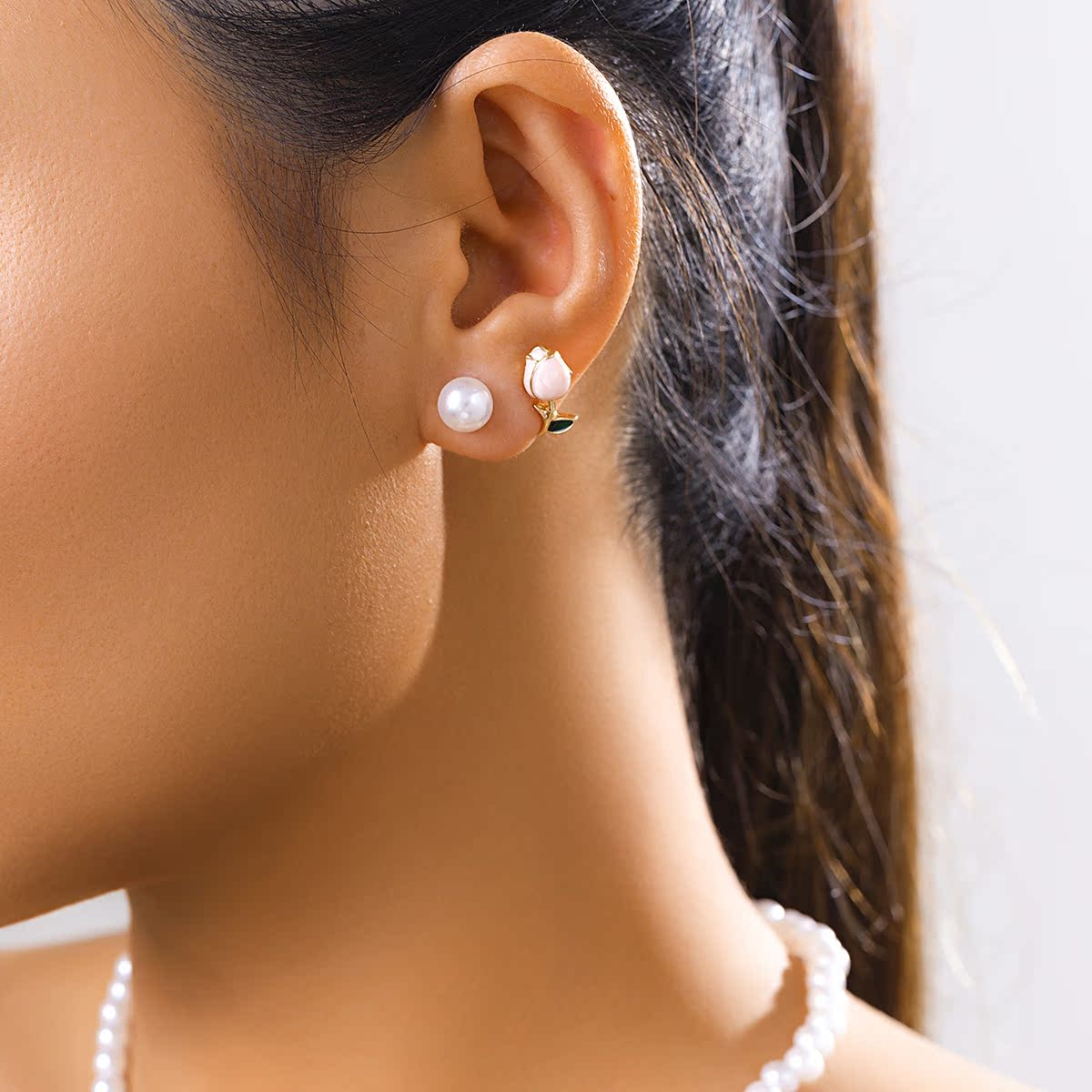 郁金香仿珍珠耳釘手鏈項鏈 歐美夏季時尚小眾設計新潮女生配飾品