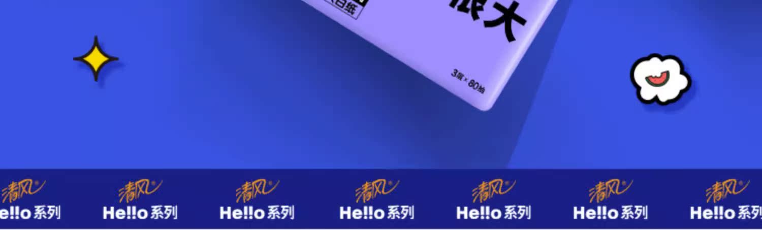 清風抽紙HELLO系列紙抽L碼大號大包80抽10包餐巾紙原生木漿實惠裝