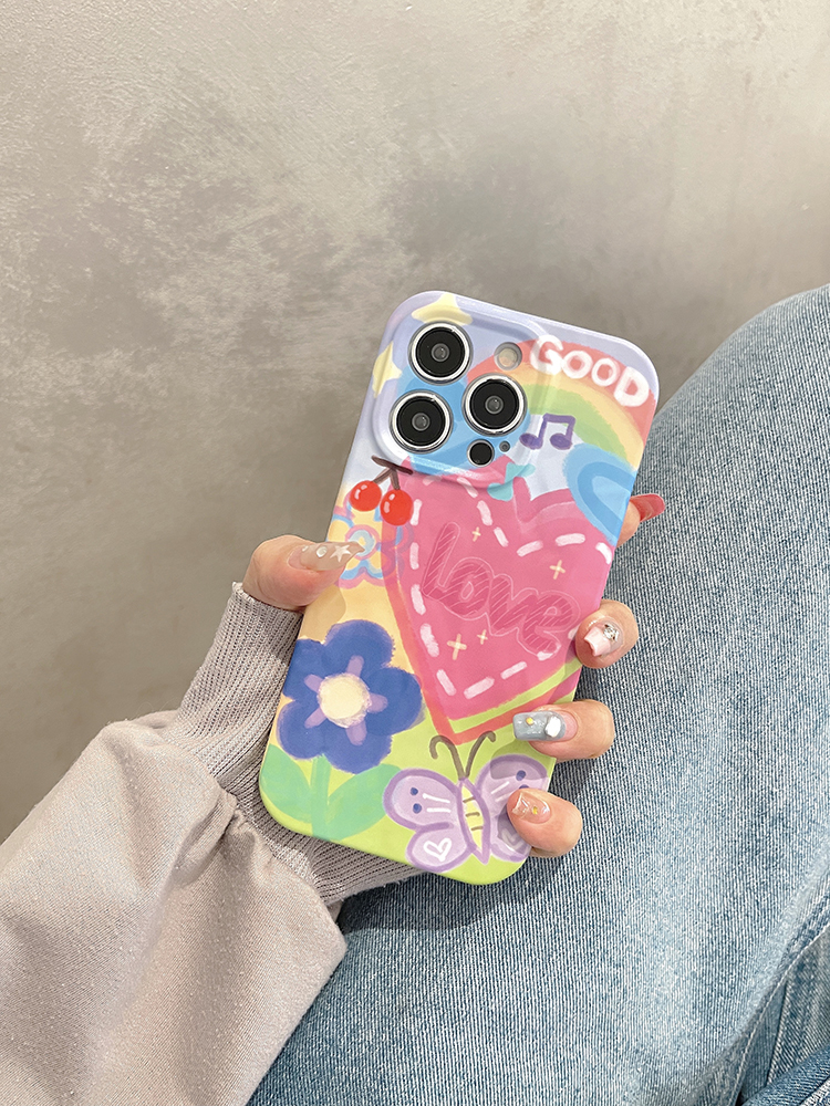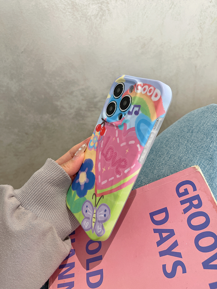 彩虹涂鴉愛心花朵 iphone13 xr手機殼
