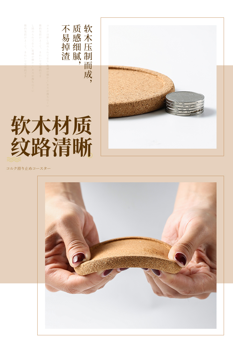 日式圓形茶杯家用防燙加厚軟木杯墊
