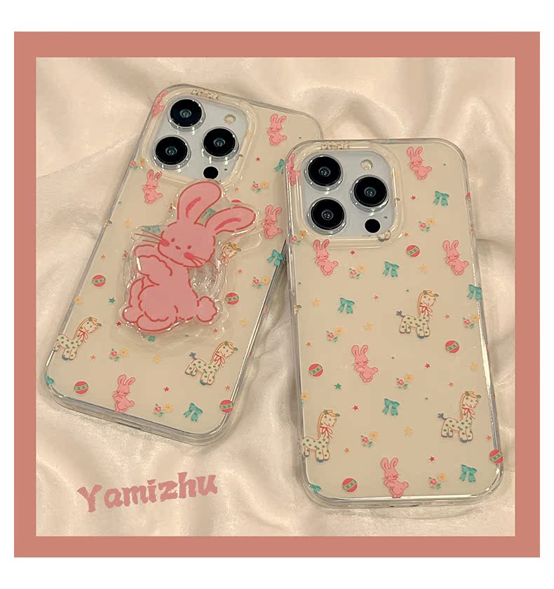 可愛長頸鹿粉色兔子帶支架適用蘋果14手機殼iPhone13ProMax新款14Pro女款12防摔11硅膠13Pro雙層創意全包軟殼