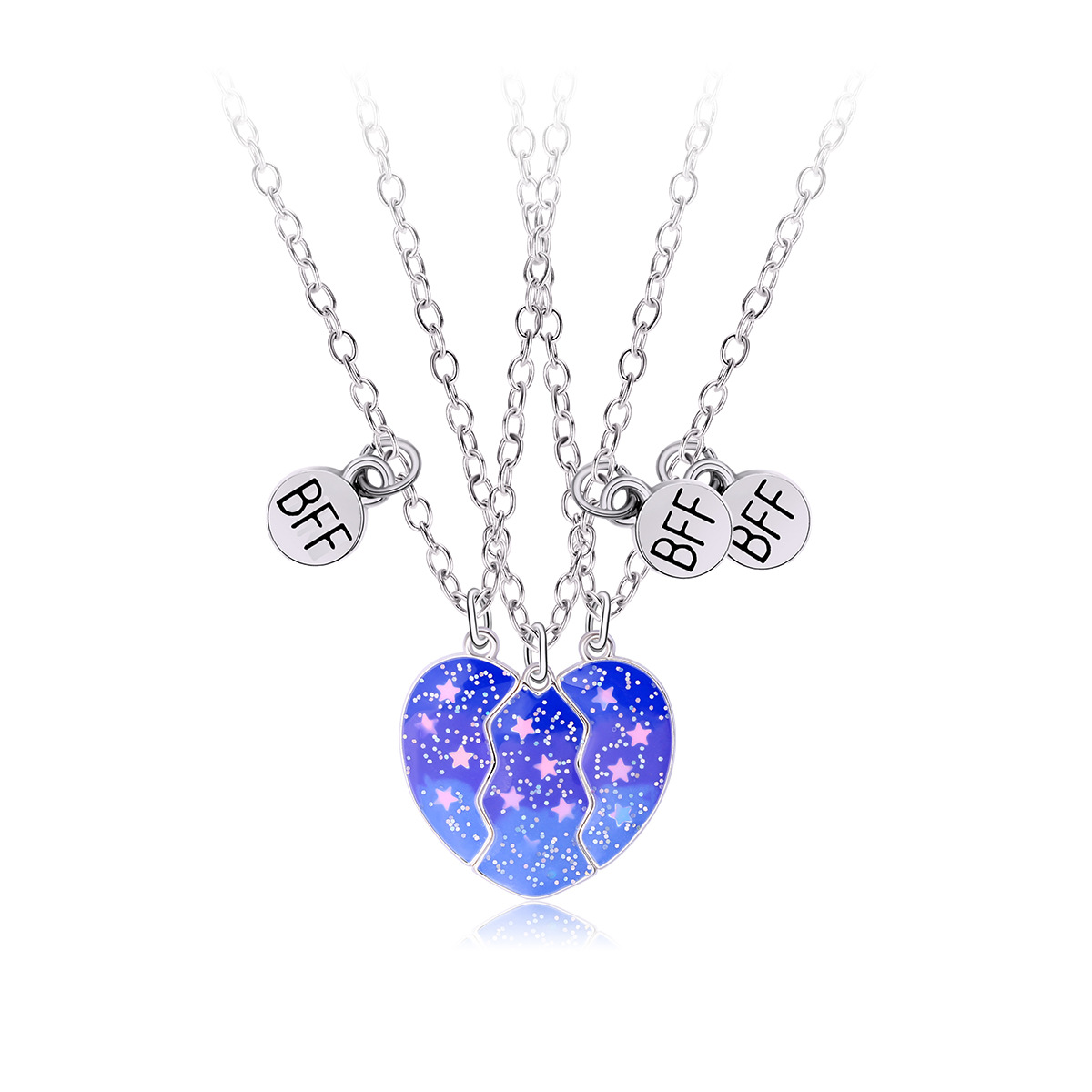 新品星空愛心兒童項鏈卡通磁吸合金滴油閨蜜姐妹心形吊墜三人款