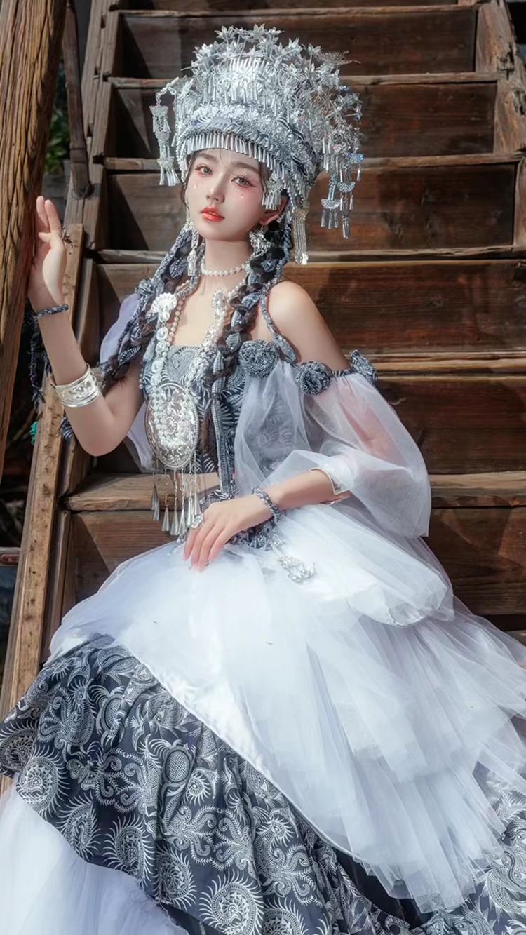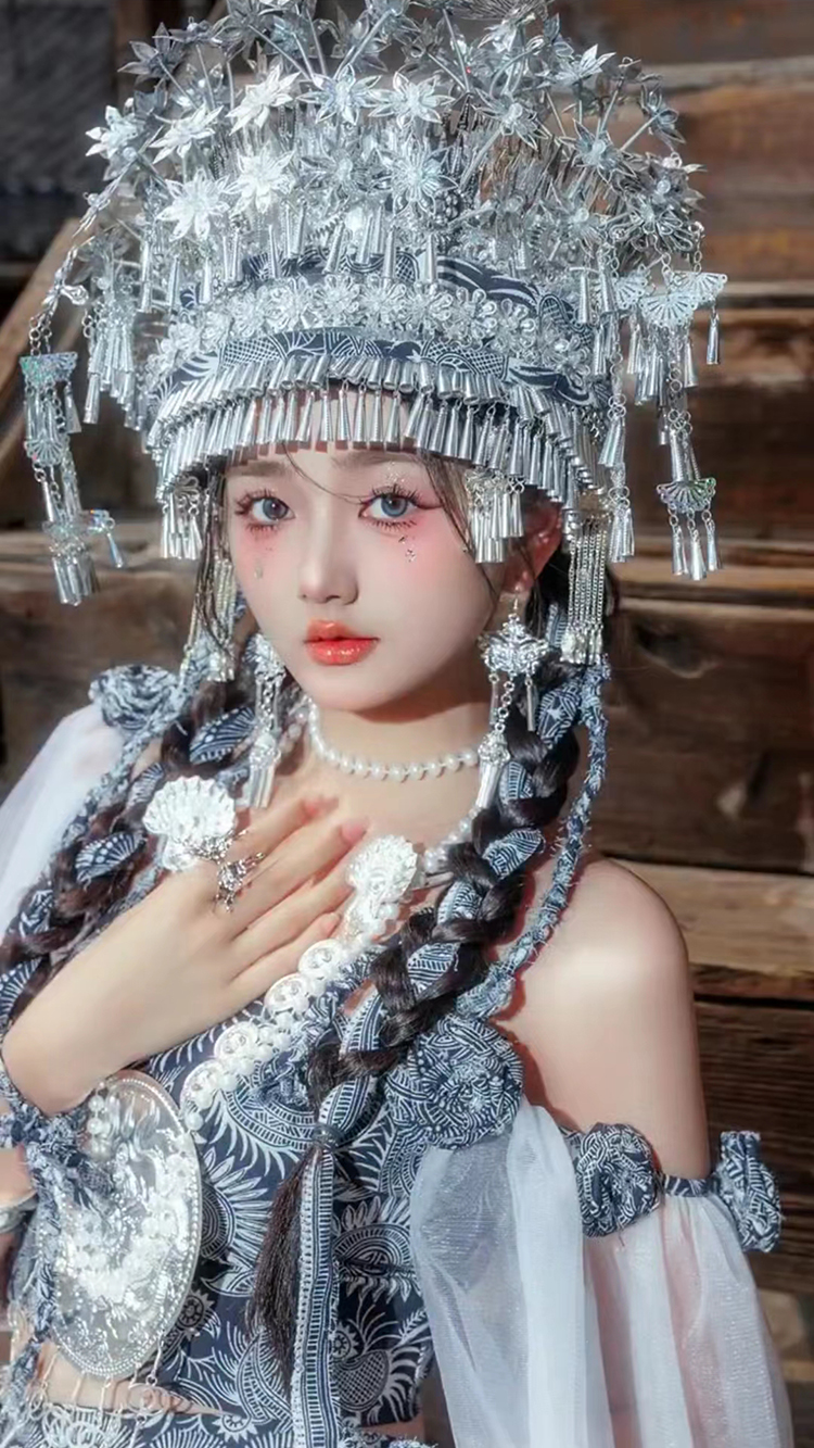 苗疆少女服裝蠟染立體裁剪飄逸仙女裙五月攝影少數民族帽子項圈新