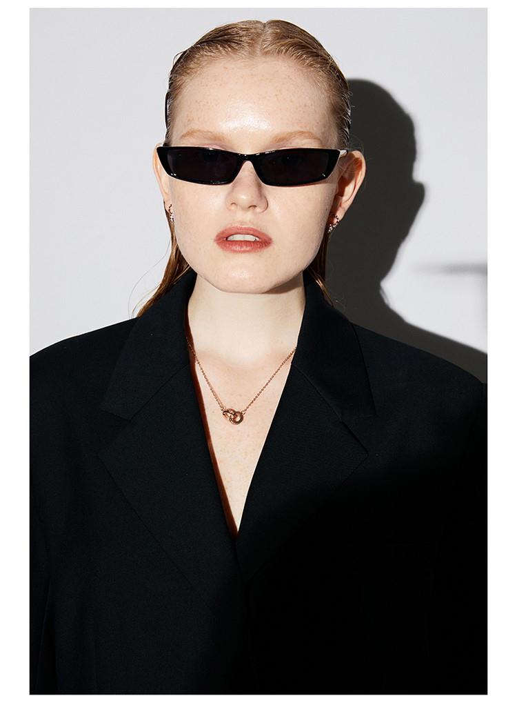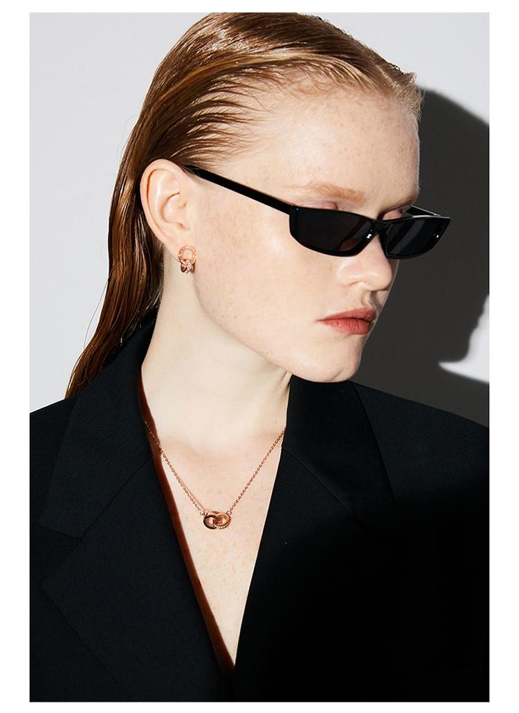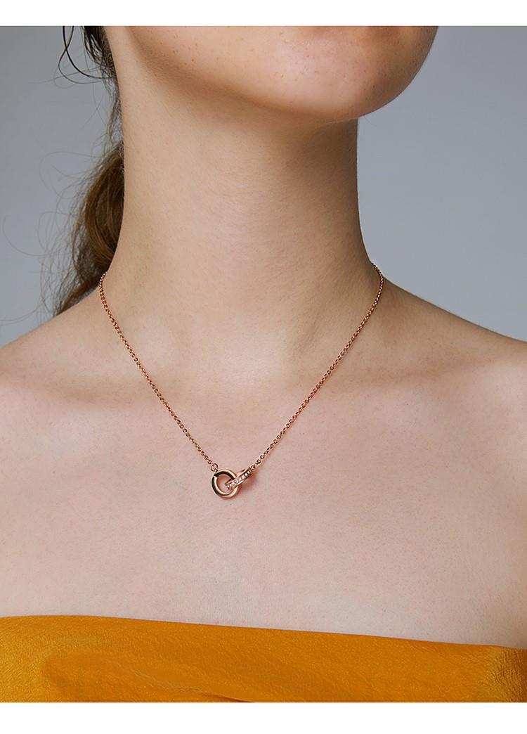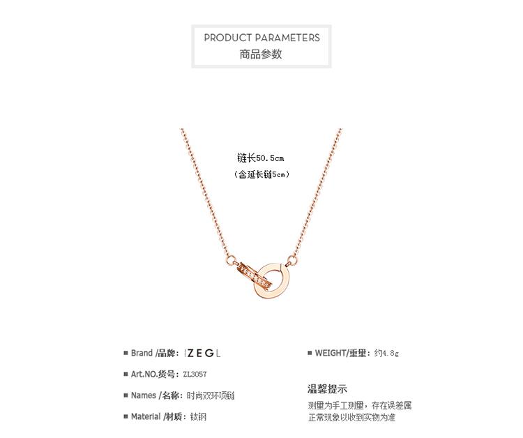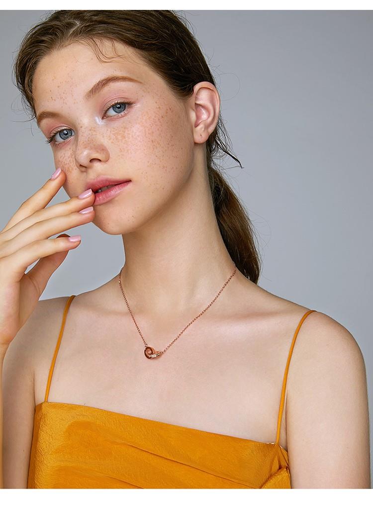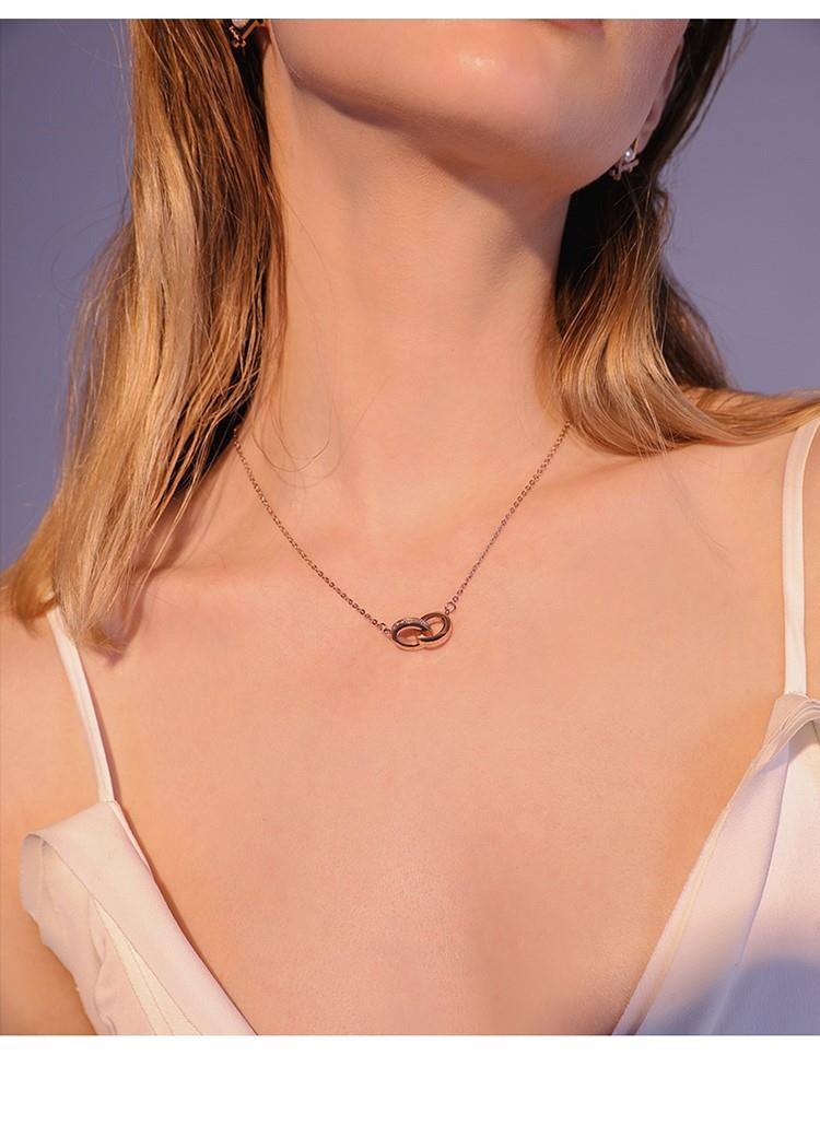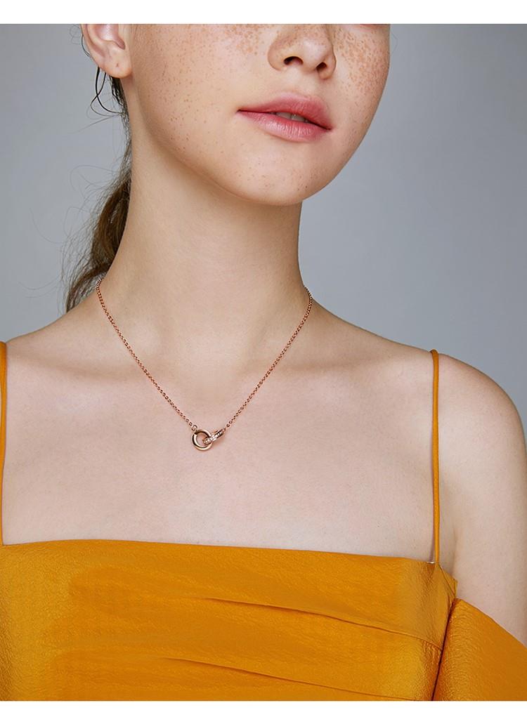 ZEGL玫瑰金環環相扣項鏈送女友鎖骨鏈雙環吊墜情侶飾品情人節禮物