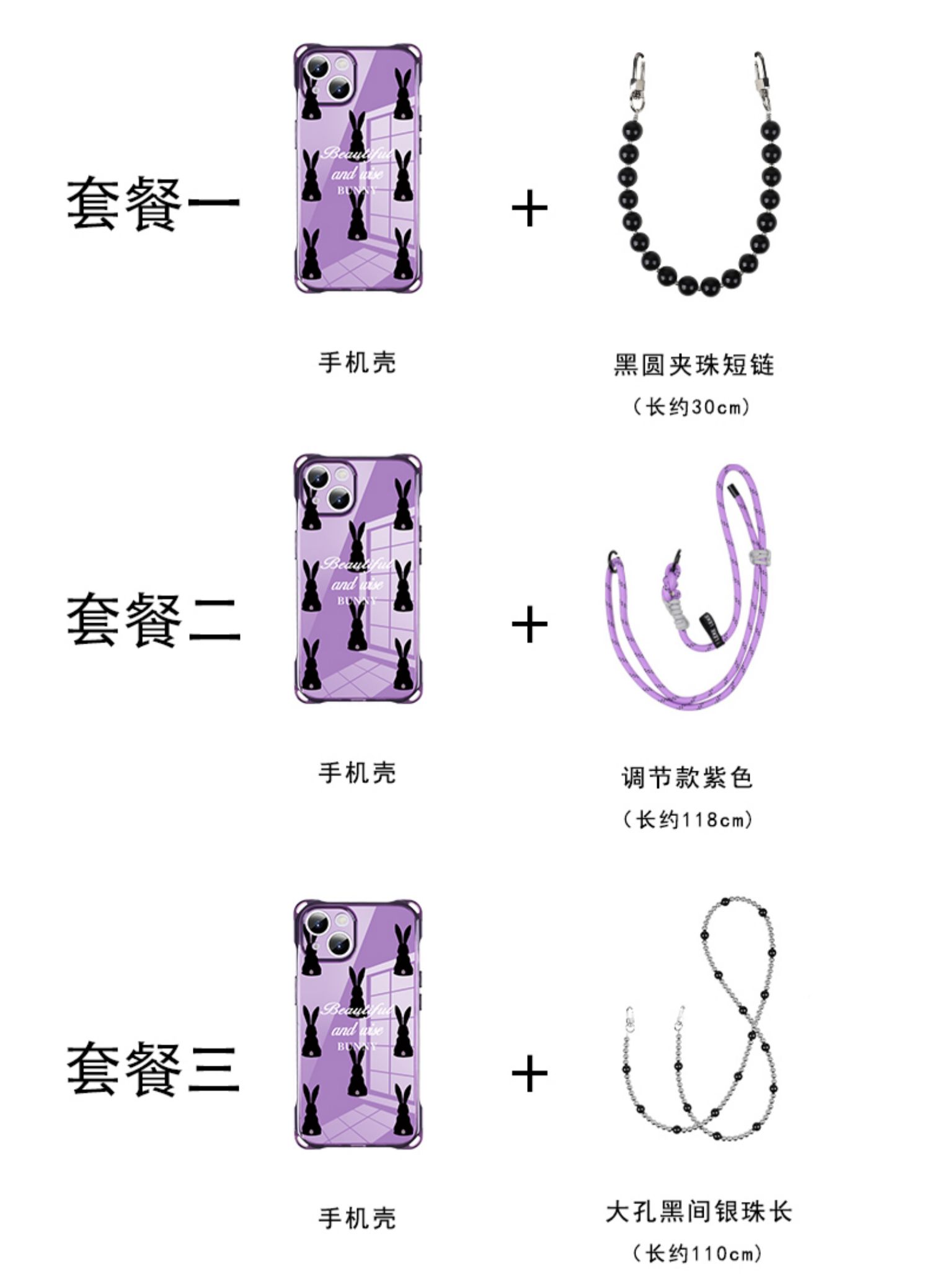 【趙露思同款】蘋果14手機殼掛繩斜挎可背適用iphone13promax四角開孔紫色14pro鏈條11兔子韓系12繩子掛手xsm