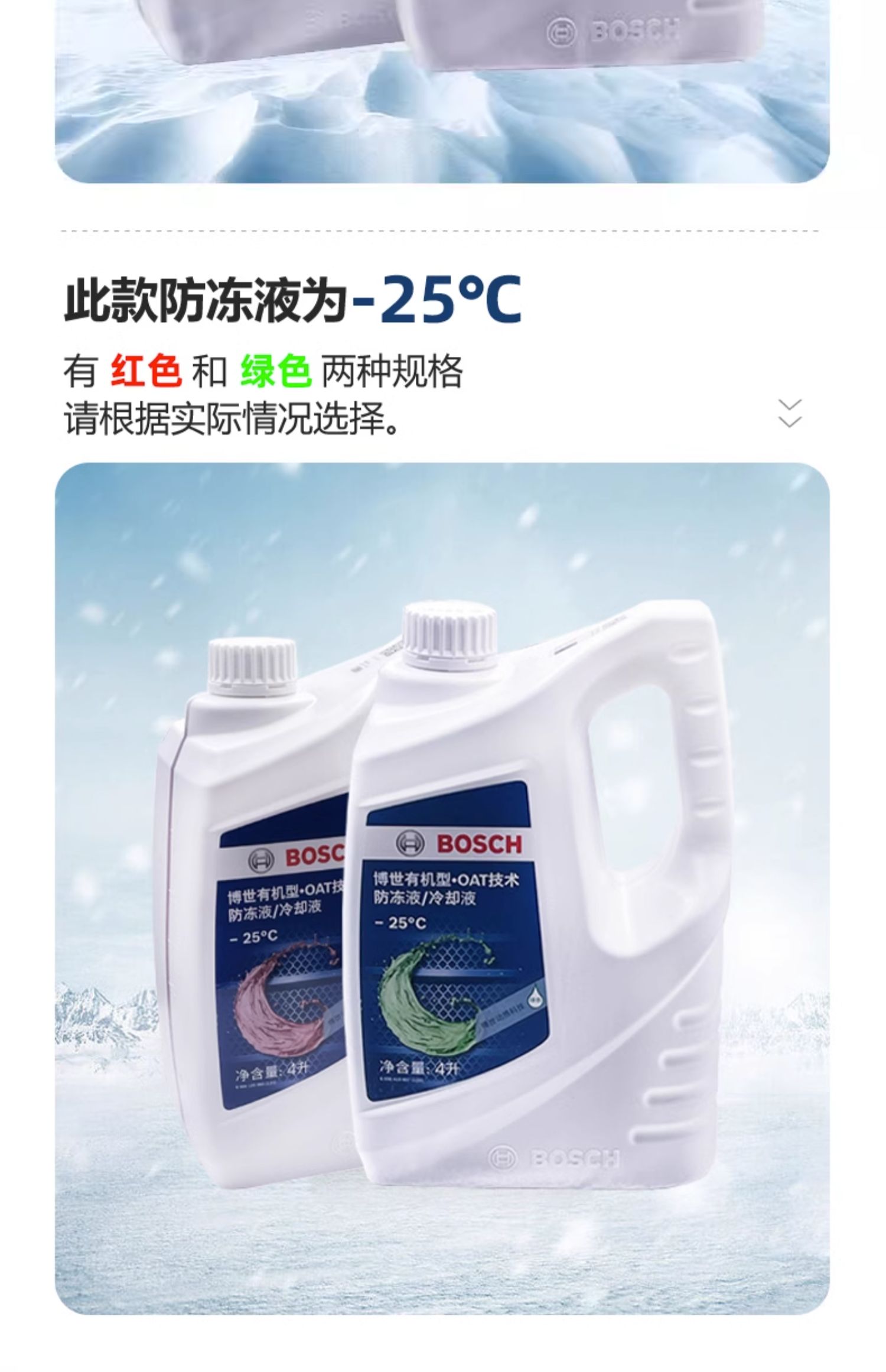 博世防凍液紅色綠色四季通用汽車發動機冷卻液有機乙二醇OAT技術