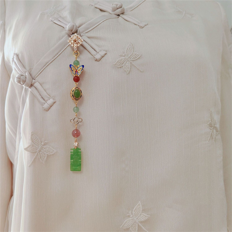 新中式文藝喜字碧玉旗袍壓襟掛件女925銀古典長款流蘇民族風飾品