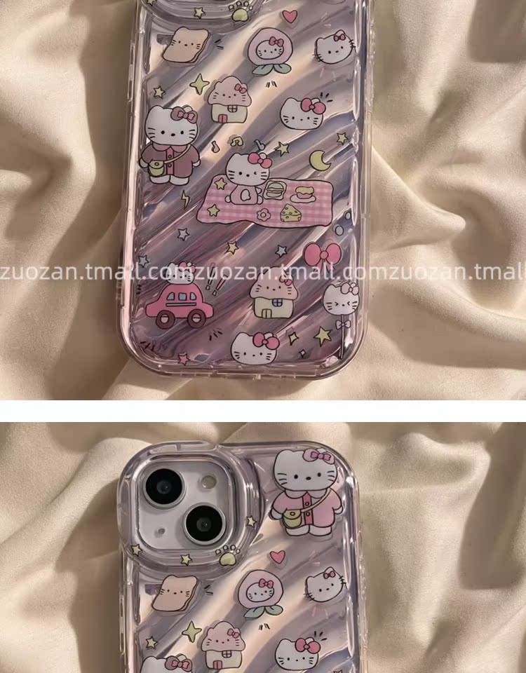 ins風卡通滿屏kt貓頭像適用iphone14pro max蘋果13手機殼12雙層波浪11小眾14pro女13pro防摔硅膠xr保護套新款