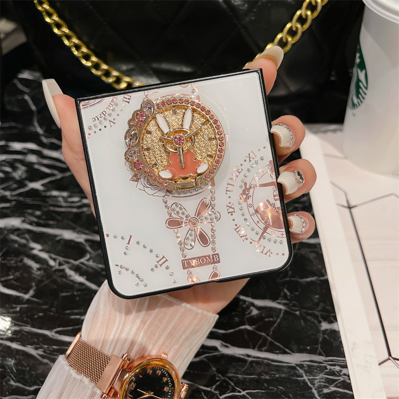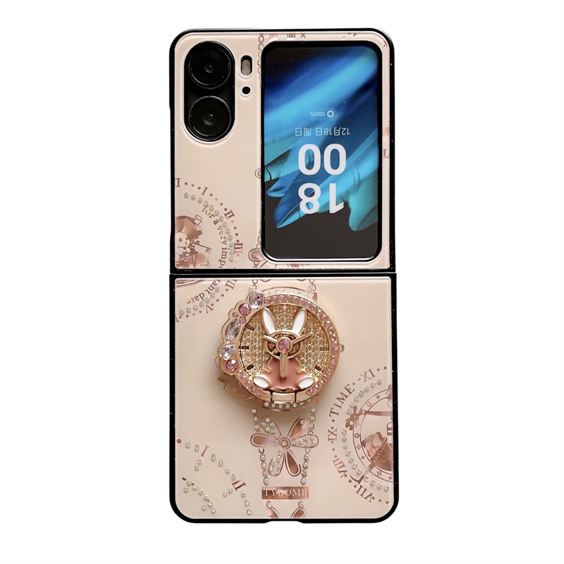 鑲鉆oppofindn2flip手機殼新款折疊屏Findn2Flip兔子水鉆支架FINDN2FLIP高檔女款潮鏡頭全包硅膠防摔5g保護套