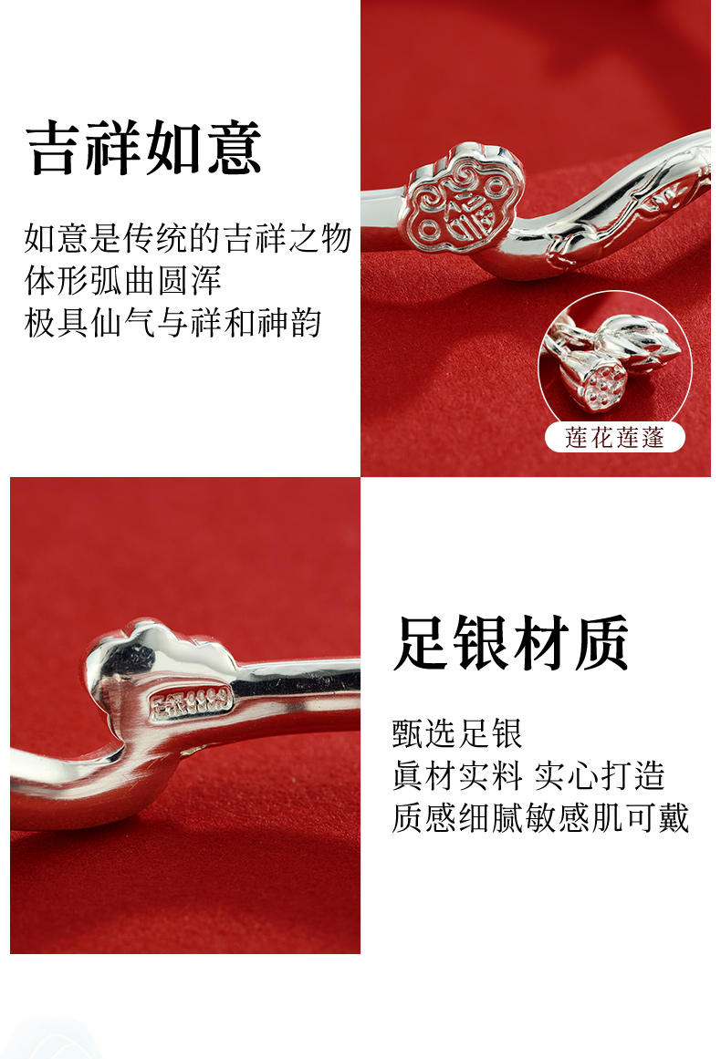 順欽銀樓S9999純銀手鐲女國潮古風足銀鐲子漢服配飾稱心如意手飾
