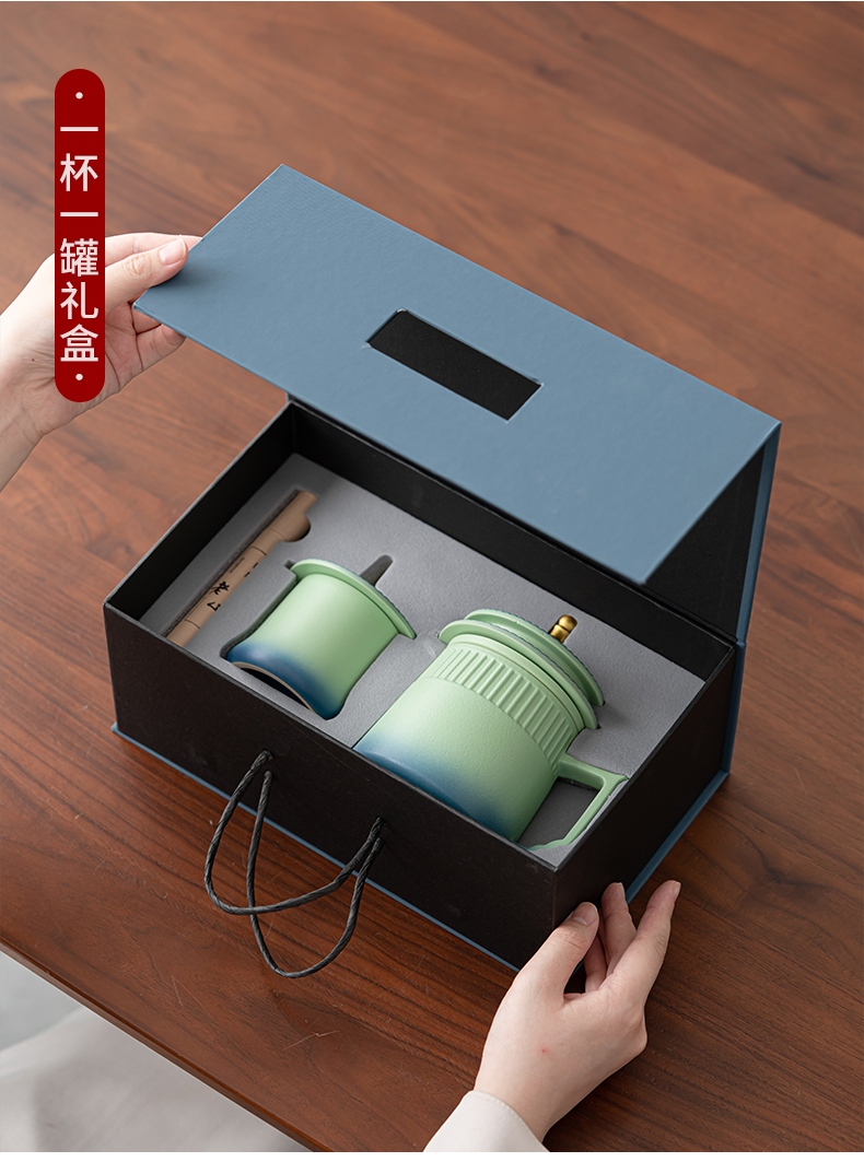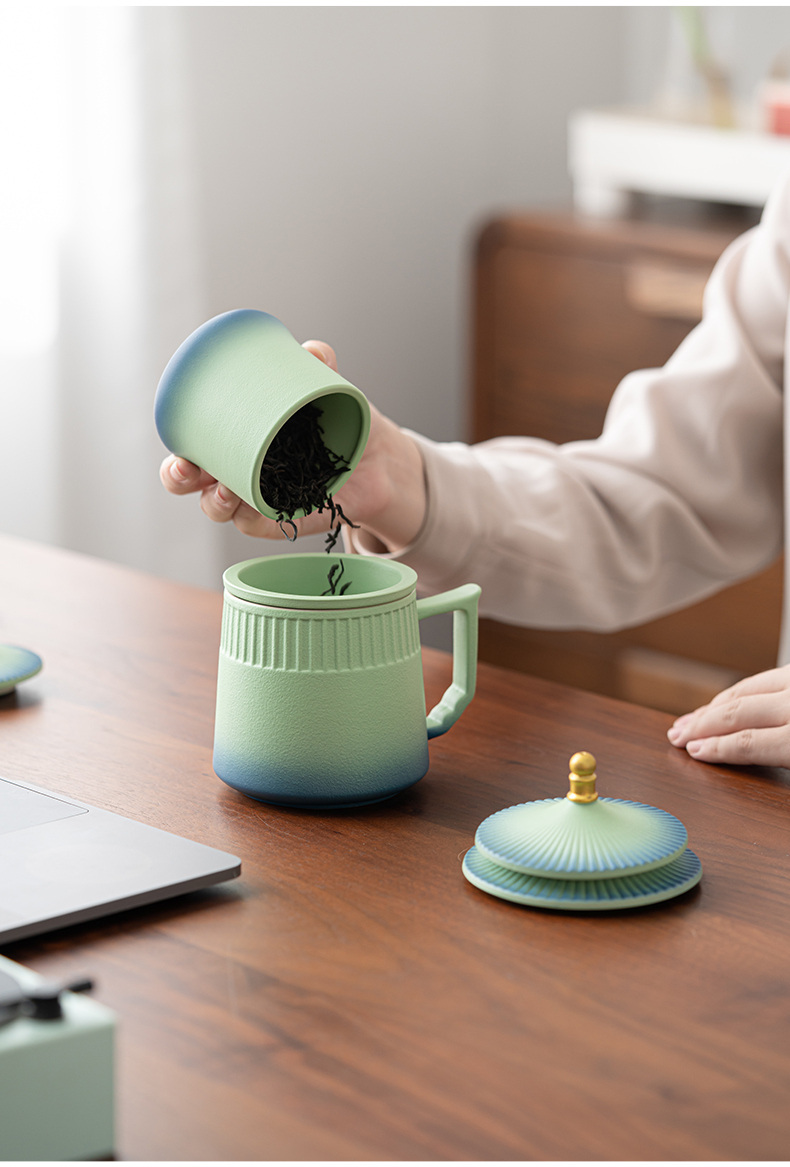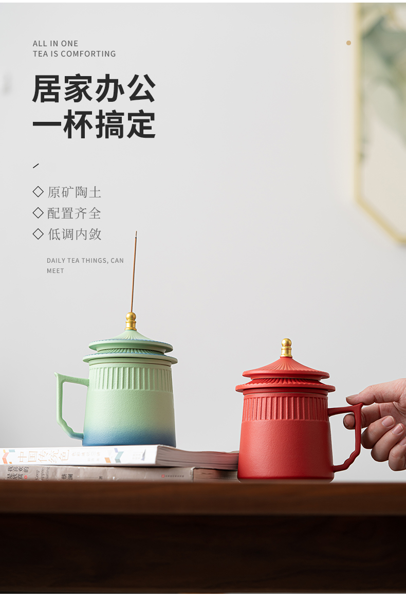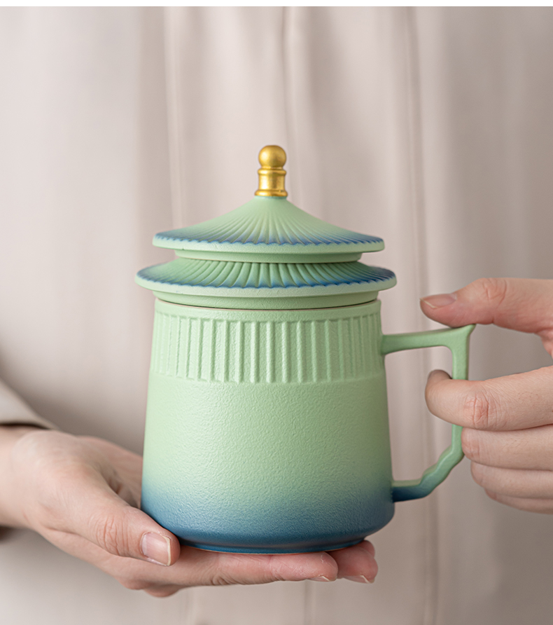 記今朝《宮廷風》陶瓷馬克杯茶水分離泡茶杯子帶蓋伴手禮LOGO定制