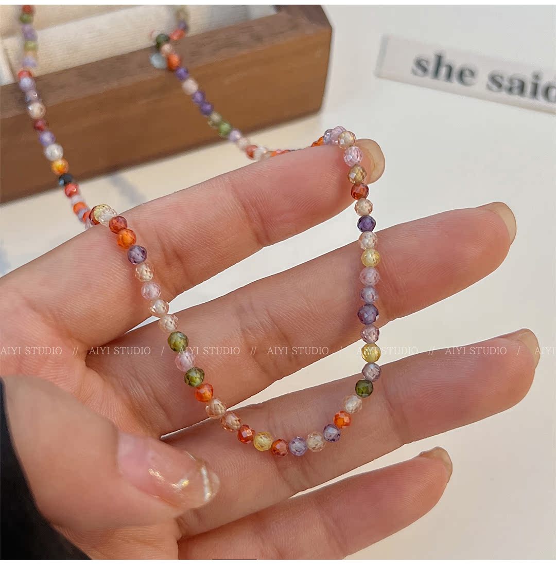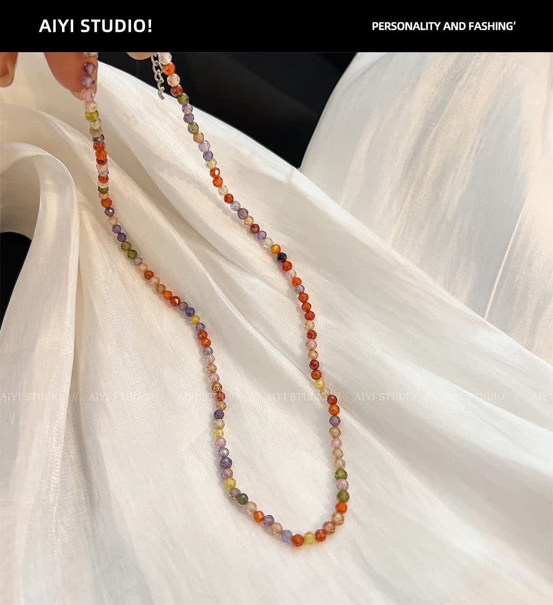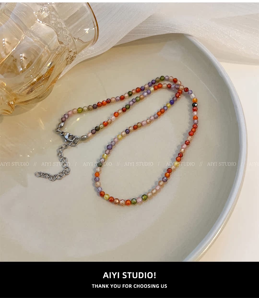 彩色水晶串珠項鏈女生輕奢小眾設計高級感鎖骨鏈氣質新款裝飾頸鏈