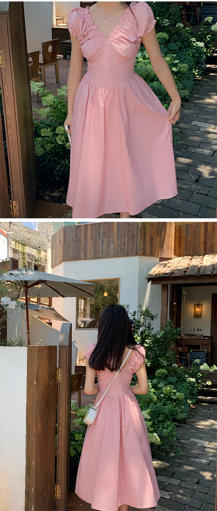 熙家 粉色少女系連衣裙女夏季小個子韓版公主裙子2023新款氣質裙