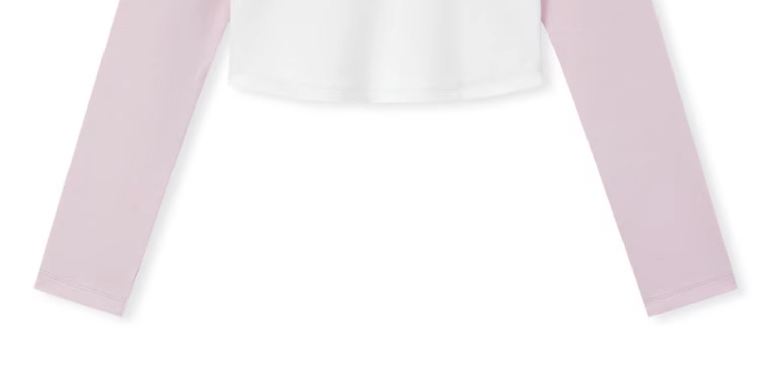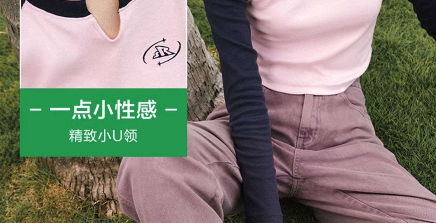 森馬長袖T恤女短款修身插肩袖黑白拼色2023冬季新款蓄熱字母上衣