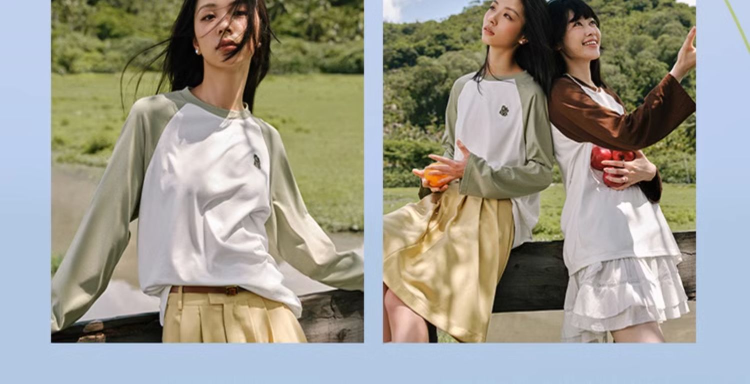 森馬長袖2023春季新款短款拼接t恤