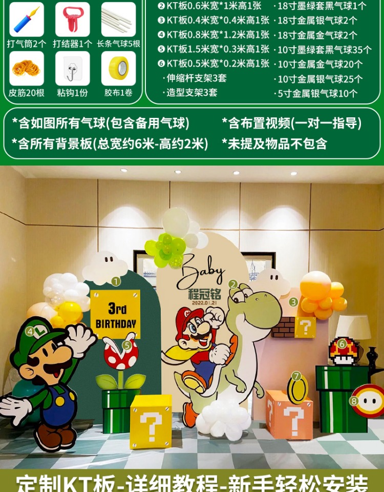超級瑪麗生日裝飾場景布置兒童男孩周歲氣球派對馬里奧背景墻kt板