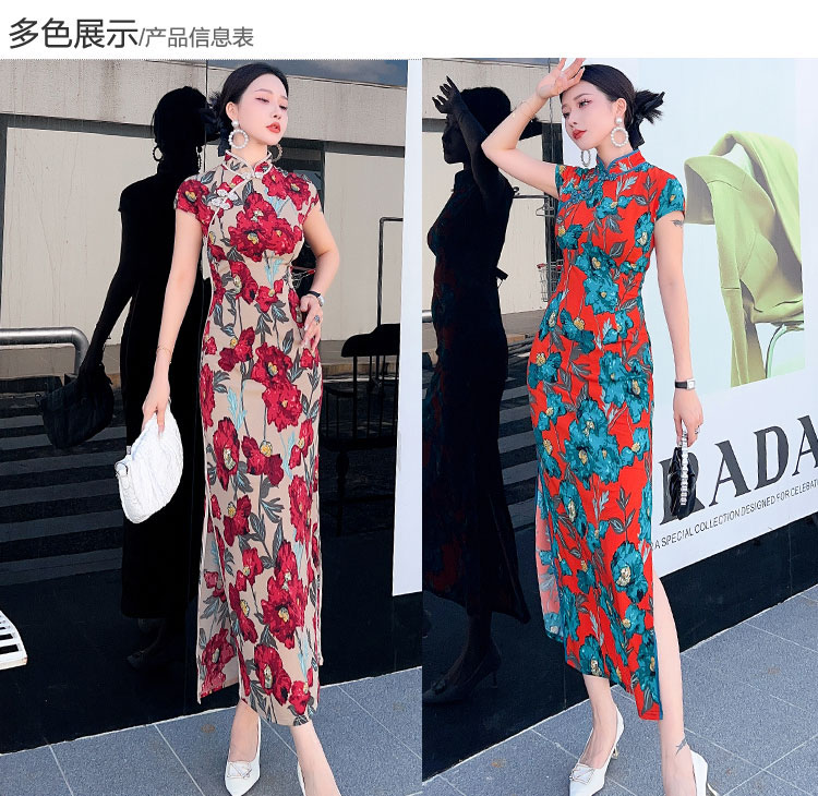 氣質修身印花高檔新式改良旗袍垂墜感獨特連衣裙超好看長裙夏新款