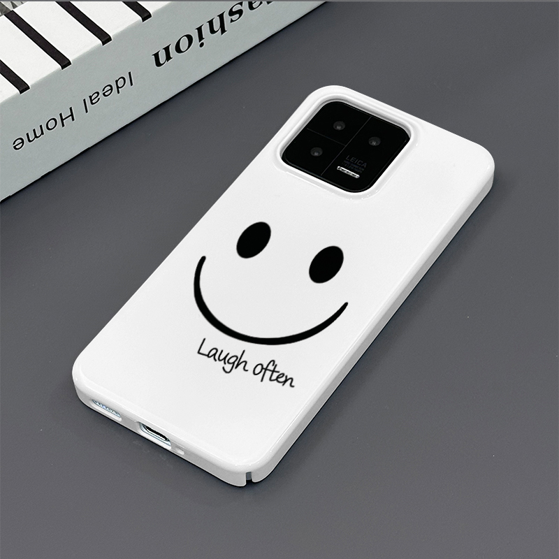 白底笑臉適用小米13菲林全包邊亮面硬殼小米13PRO手機殼保護套個性創意簡約新款男女情侶ins日韓小眾耐臟外殼