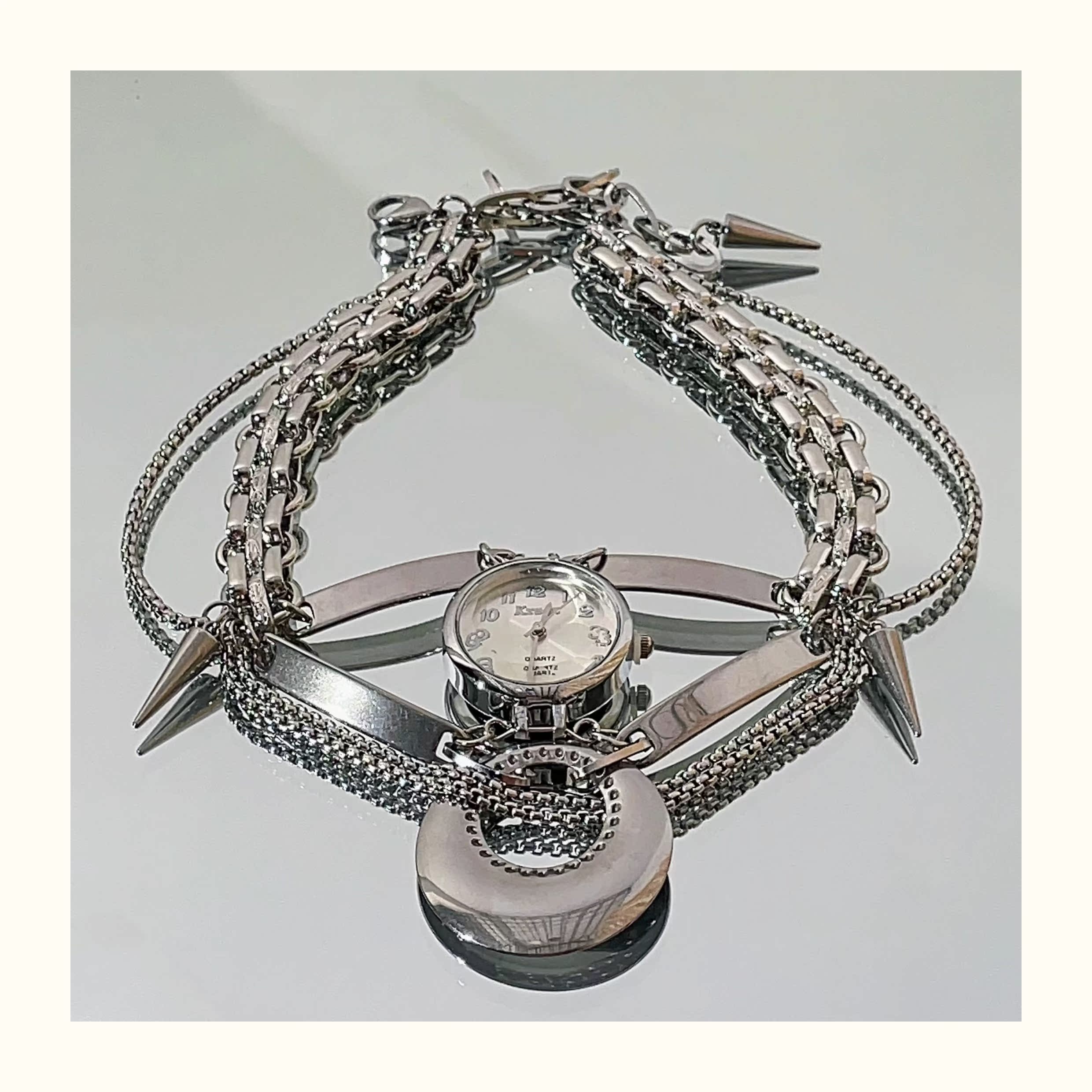 銀色皮革愛心蝴蝶方形鐘表項鏈潮酷設計小眾個性ins風手表脖頸鏈