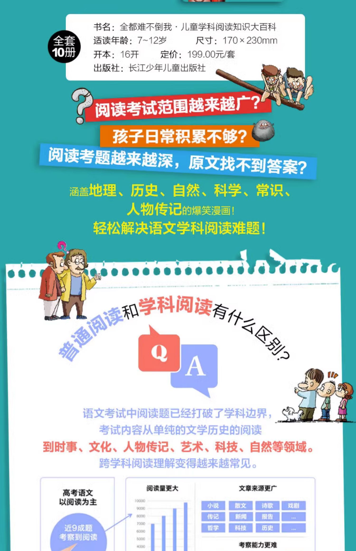全都難不倒我:兒童學科閱讀知識大百科 全10冊6-12歲兒童地理、歷史、自然、科學、常識、人物傳記的爆笑漫畫讀物