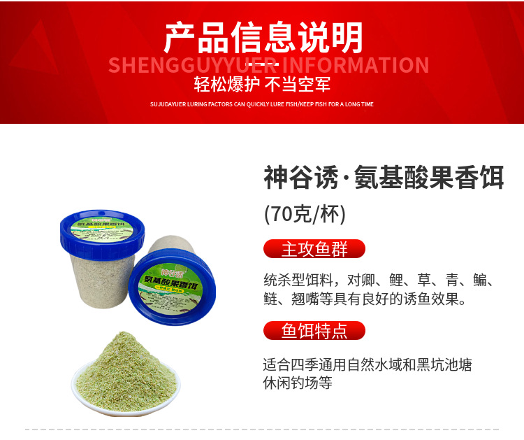 速聚達漁具廠主要生產 魚餌、魚食料、釣魚用品、鯽魚餌、鯉魚餌 窩料 釣魚小藥 垂釣基礎料等產品專業生產加工的公司,擁有完整、科學的質量管理體系。聚達漁具廠的誠信、實力和產品質量獲得業界的認可。歡迎各界朋友蒞臨參觀、