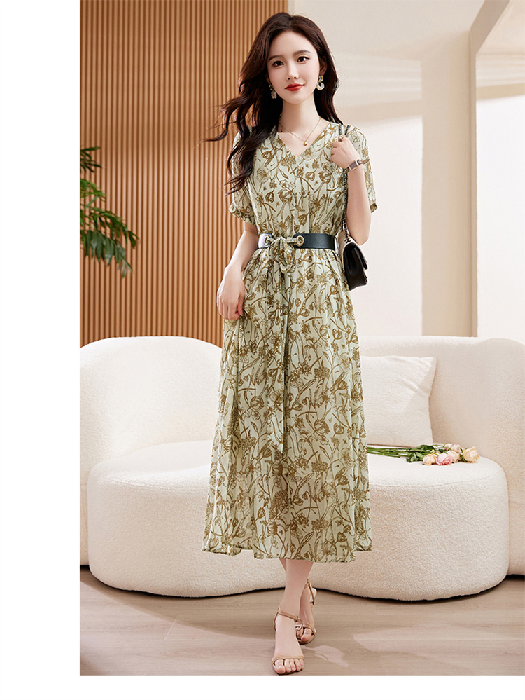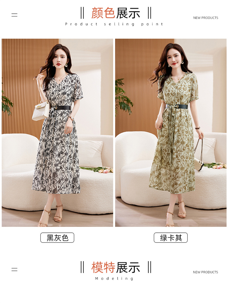 杭州真絲連衣裙夏季2022年新款女高端氣質中長款V領桑蠶絲花裙子