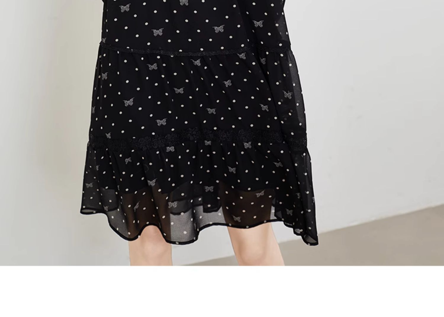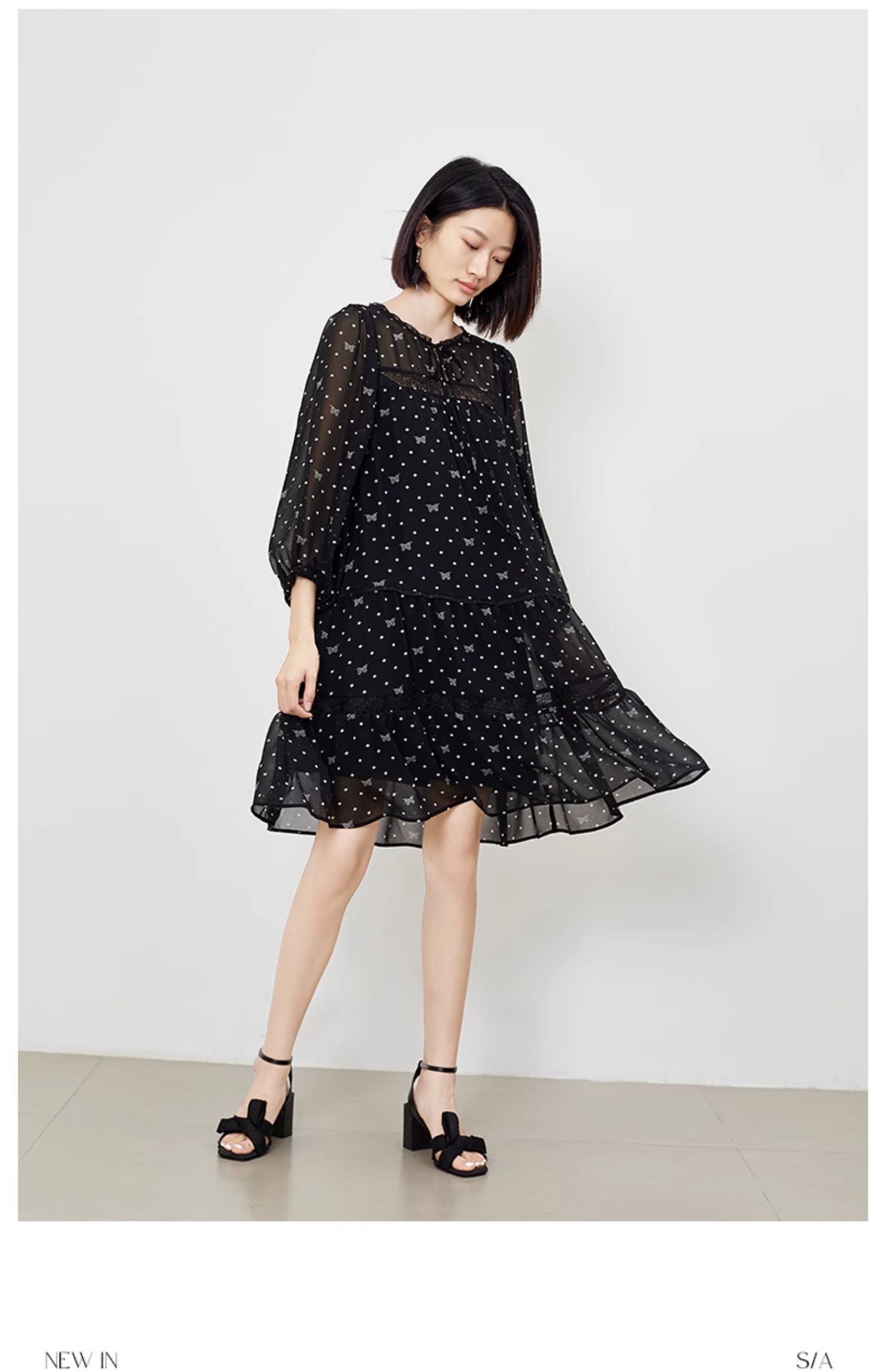 qs秸熙2023秋季新款韓版荷葉邊連衣裙女蝴蝶印花吊帶寬松兩件套裙